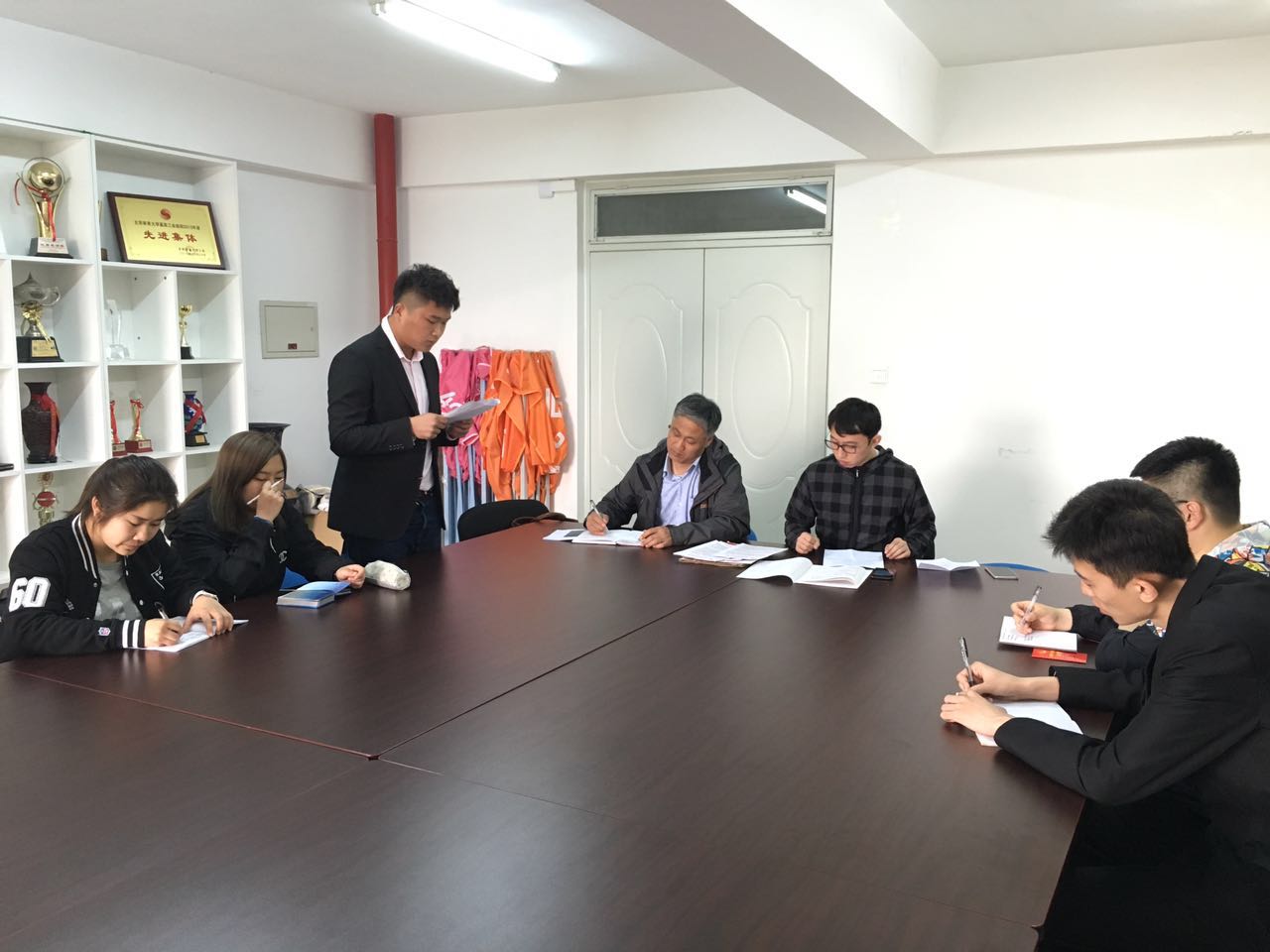 2016年4月6日中午12点,jinnianhui今年会15级开展的预备党员转正大会在教研楼210成功举行。本次大会旨在“输送新血液,接收新党员”,参加本次大会的有竞技体院张君书记,竞体15级党支部书记鲁骥,党员杨博瀚,预备党员高浩冉以及入党积极分子。