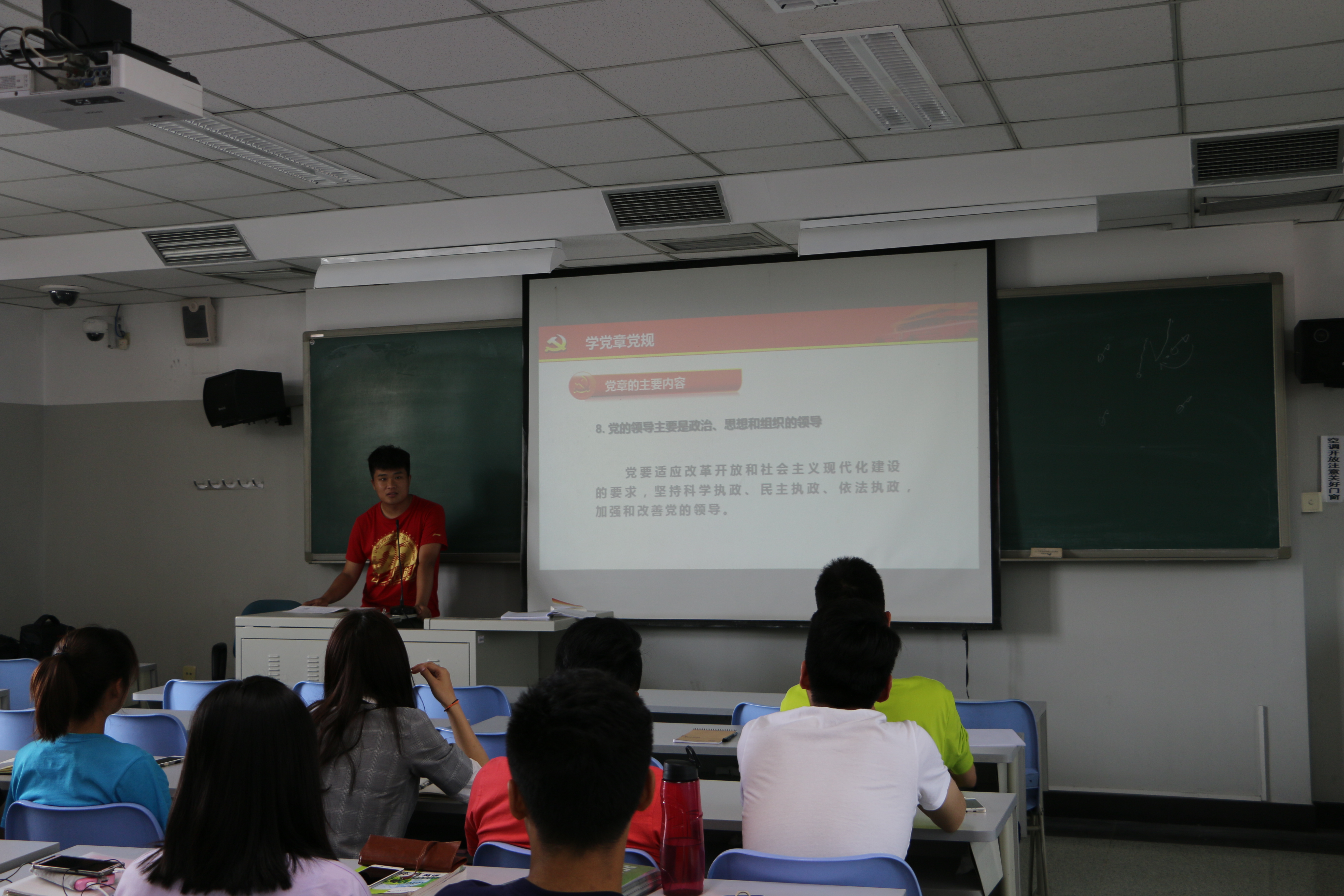 会上,支部书记鲁骥同志组织支部成员及入党积极分子们学习党章,他强调在学习党章内容的同时更要了解学习党章的目的和意义,用党章内容充实自己要求自己,真正做到学以致用,发挥党员在学习生活的模范先进作用,努力将15级党支部发展成为一支作风优良、团结向上的队伍。