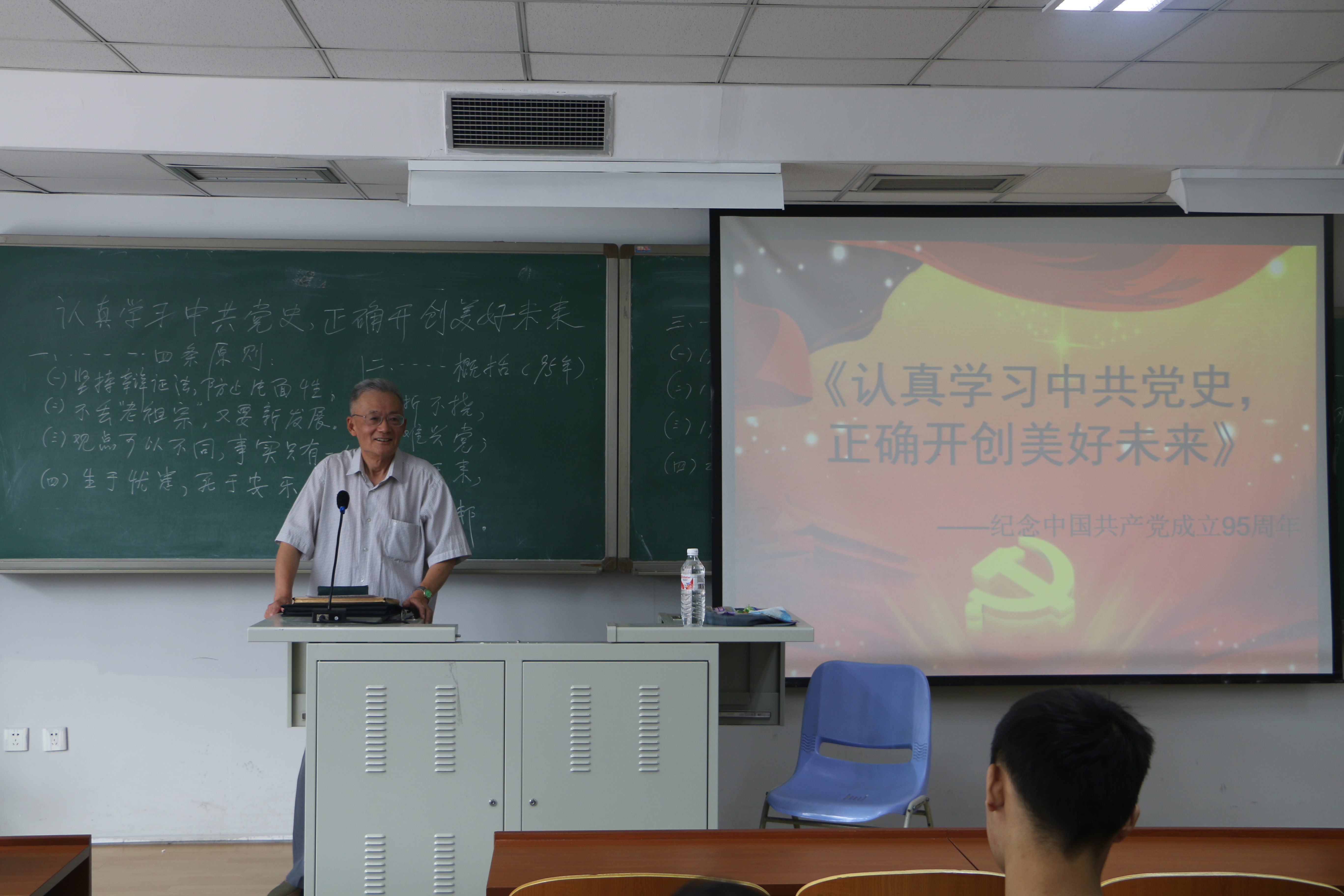 2016年6月29日上午10点,jinnianhui今年会党总支书记张君特邀中共中央党校原机关党委副书记、中国延安精神研究会理事薛鑫良先生为2015级入党积极分子、年级干部开展教育讲座。本次活动由2015级团分总支部承办,旨在建党九十五周年之际,使入党积极分子、年级干部能深入学习中共党史,正确开创美好未来。
