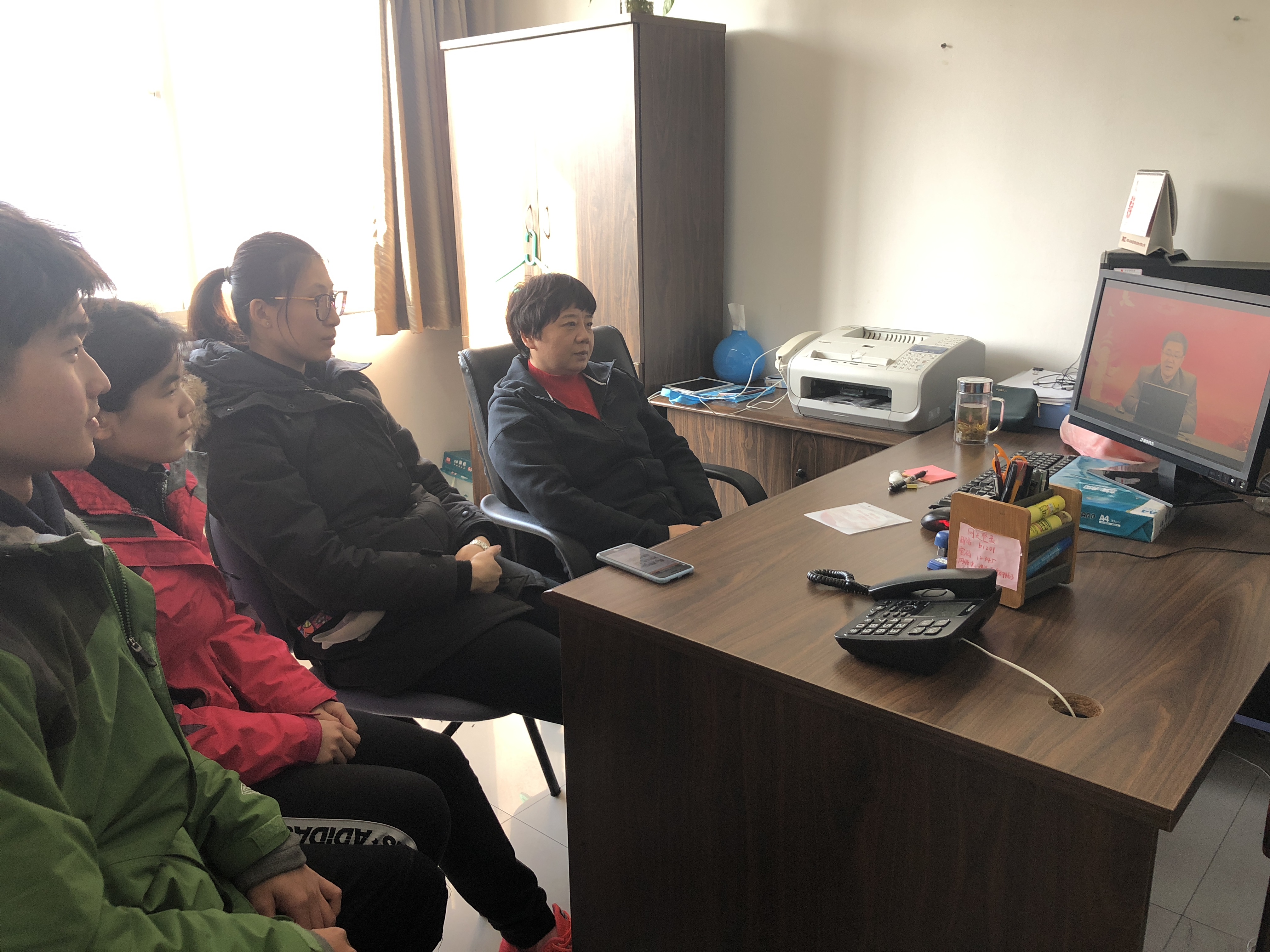 为继续深入学习贯彻党的十九大精神, 2017年12月29日中午12:30,jinnianhui今年会2017级党支部全体成员在支部书记高静怡老师的带领下,召开了“四新”学习讨论会。