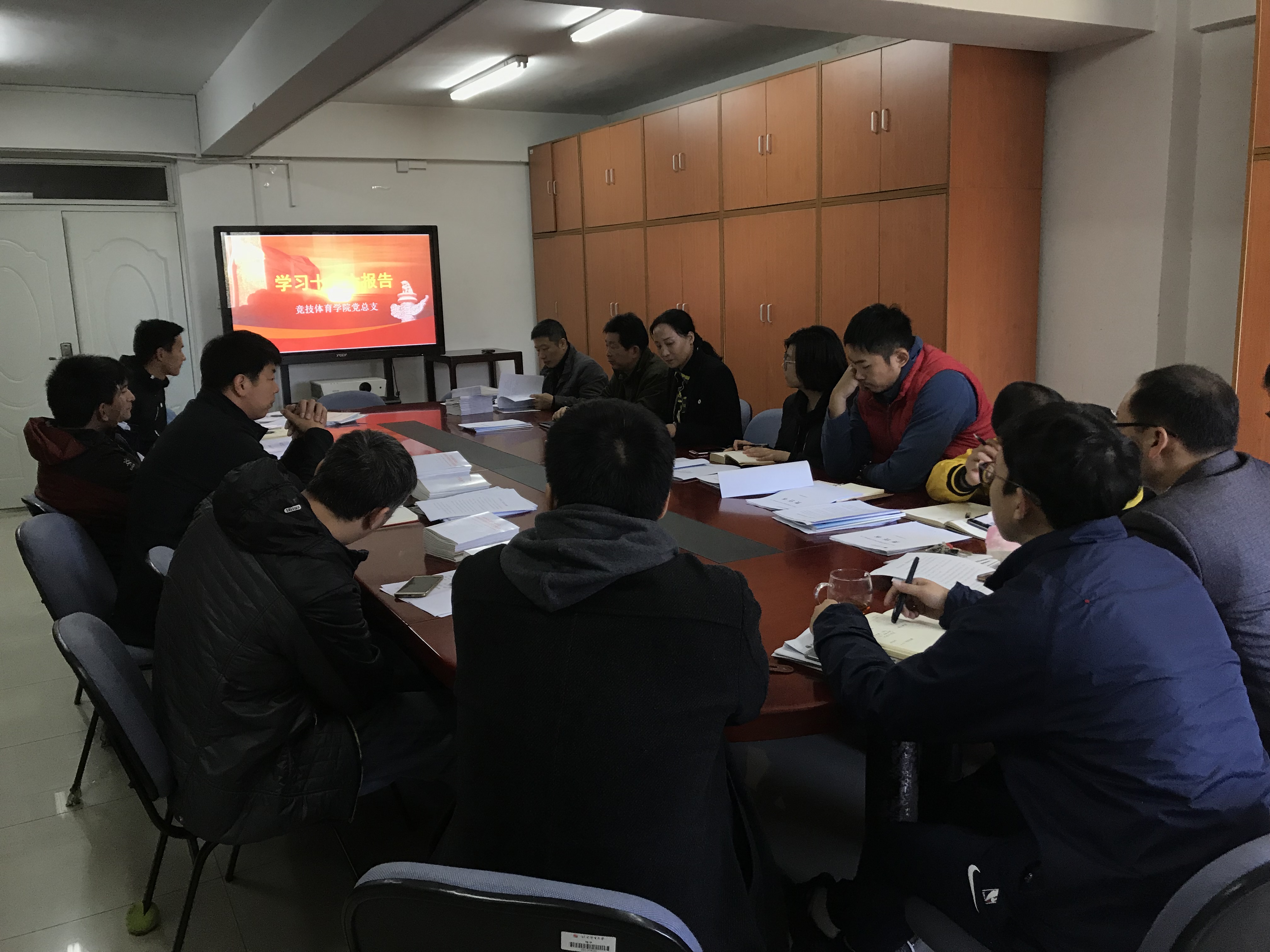 会上,尚迎秋书记带领大家学习了党的十九大报告并表示,十九大报告站位高、视野宽、理论新,对党和国家的工作提出了新要求、新目标和新方向。学院党员干部要带头学习,深刻领会其精神内涵,担当起教育强国、体育强国、健康中国的历史重任,为实现中华民族伟大复兴贡献力量。马冰院长谈到,十九大报告定义了新时代,形成了新思想,分析了新矛盾,确立了新目标,明确了新方略,带来了新气象,开启了新征程。在未来,我们将以此为行动指南,结合学校改革发展和体育工作实际,不忘初心,牢记使命,砥砺前行。