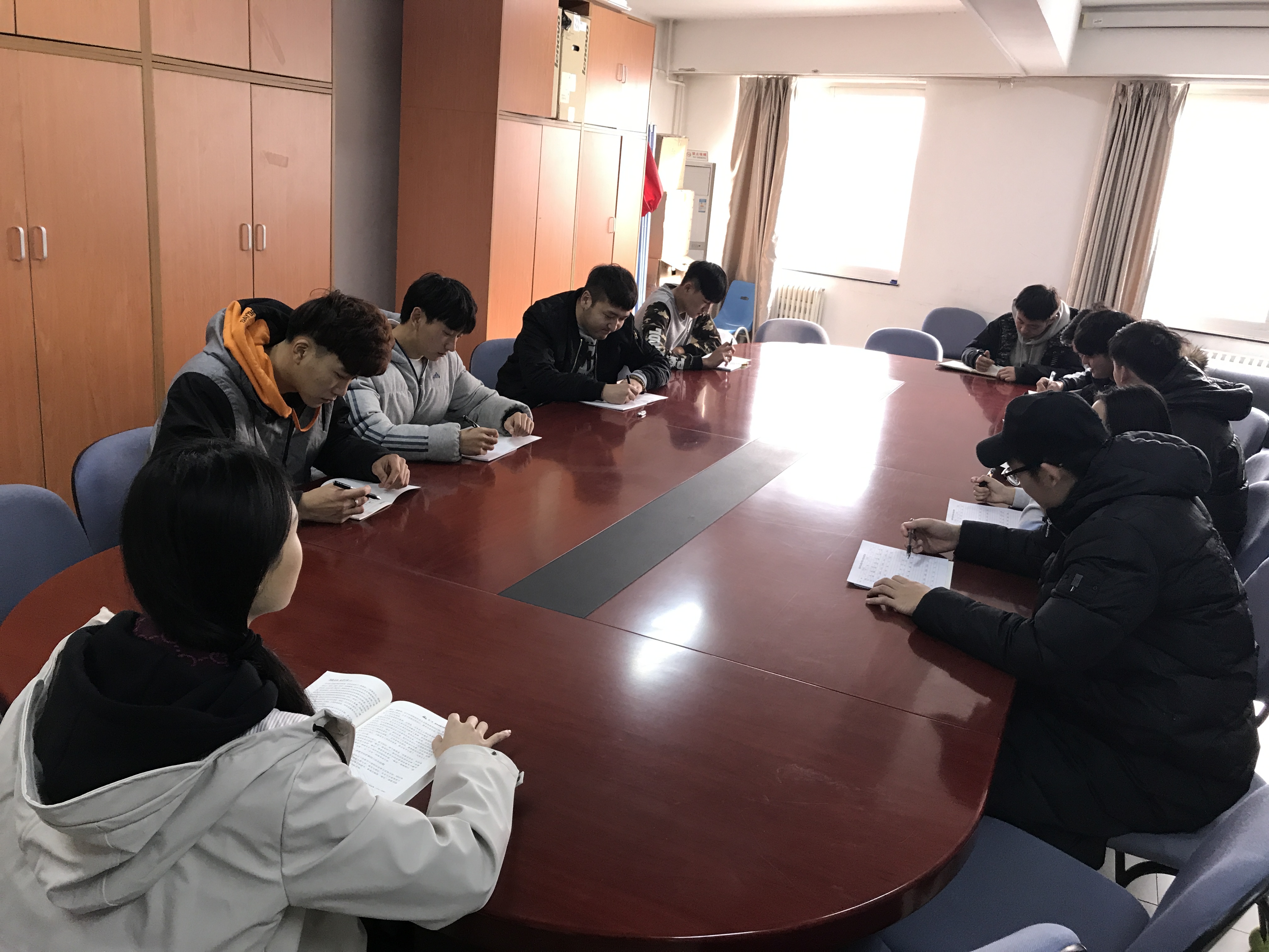 jinnianhui今年会2014级实习队党支部以高度的政治自觉和行动自觉,抓紧抓实党的十九大精神学习宣传贯彻工作,着力用习近平新时代中国特色社会主义思想武装头脑、指导实践、推动工作。在实习课余时间实习党支部成员学习十九大精神,积极参与讨论,发表自己的观点。