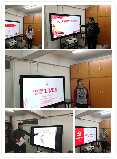 尚迎秋书记总结到,各支部严格按照学校党委和学院党总支的部署安排完成了前一阶段的学习,做到了结合本部门、本专业学以致用,营造了良好的学习氛围,教育成效明显。尚书记对下一阶段的学习实践活动提出了要求:一是提高政治站位,以高度的政治责任感和历史使命感真正学懂弄通党的十九大精神;二是进一步增强党的十九大精神学习教育的针对性、实效性;三是充分发挥基层党组织的战斗堡垒作用和党员的先锋模范作用,在党的十九大精神和习近平新时代中国特色社会主义思想的引领下,不忘初心,牢记使命,为体育强国和健康中国自觉担当作为。