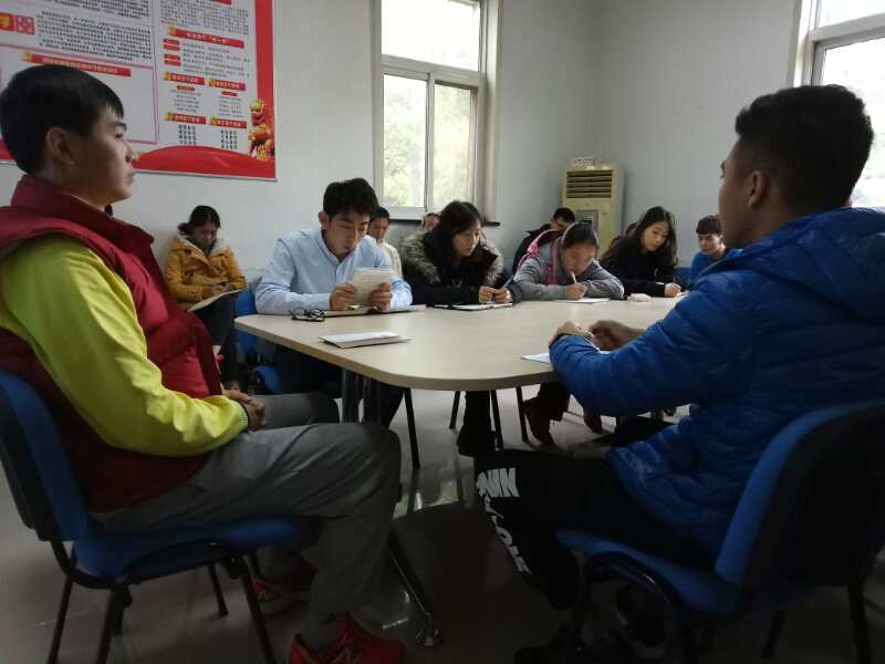 2017年11月8日13:00,jinnianhui今年会2016级党支部组织入党积极分子和优秀团员于田径馆会议室学习“十九大报告“专题会,会议由张怀川老师主持。