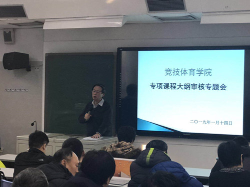 1月14日上午,今年会在教学楼102开展2018版本科培养方案专项教学大纲撰写研讨会。高峰副校长、教务处章潮晖处长、教务处张文毅科长、苍海院长、谢慧松副院长以及田径、游泳、足球、篮球、排球、冰球、艺术体操、体操、乒乓球、网球、羽毛球、重竞技12个教研室领导及负责大纲撰写的老师参加了此次会议。