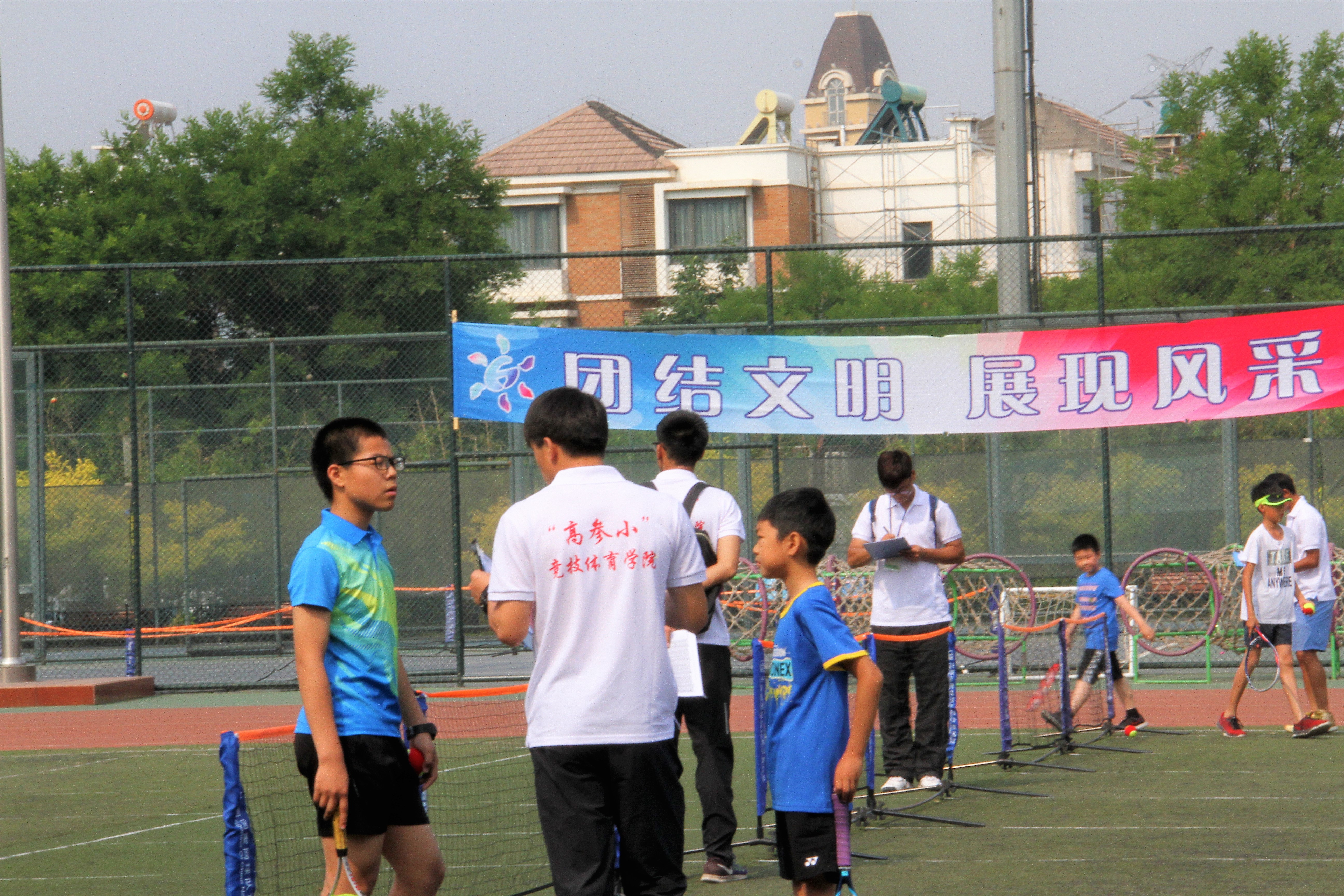 2017年5月21日,由北京农学院附属小学承办的2017北京市体育传统项目学校网球比赛在北京农学院附属小学操场上火热开展。此次比赛,共有47所小学参加,运动员、教练员合计达400人之多。本次比赛的裁判共计35人,均由今年会jinnianhui金字招牌“高参小”团队从网球专项的学生中挑选而出,他们都拥有国家级裁判水平,从专业性角度提高了本次比赛的赛事高度,表现了今年会jinnianhui金字招牌“高参小”团队对比赛的重视和支持。
