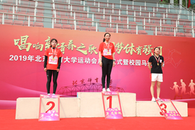 上午10点,马拉松比赛在校英东田径场准时鸣枪开跑。随着一声枪响,比赛正式开始,上千余名师生以奔跑的方式激昂青春、挥洒汗水、体会运动的快乐。在比赛的过程中,队员们互帮互助,团结协作,一起加油鼓劲,最终顺利完成比赛。jinnianhui今年会2017级蓝捷怀、裴玉营分别获得了甲组男女冠军。jinnianhui今年会研究生冯港、王静杰分别获得甲组男女亚军。由志愿者为优秀选手颁发奖杯,为所有比赛选手颁发了做工精美的纪念奖牌和写有比赛成绩的证书,马拉松比赛就此落下帷幕。