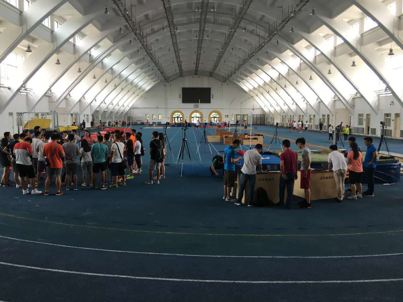 本次培训学习的科研仪器包括:三维测力台、红外运动捕捉系统和无线表面肌电测试系统。培训内容包括理论和实操两个部分。理论培训在教学楼304进行,聘请的三位工程师分别向大家介绍了科研仪器的相关原理以及在体育运动中的应用方法。实践操作环节在田径馆进行,工程师向大家展示了仪器设备的安装方式以及操作流程。在展示环节过后,部分参加者在工程师的指导下进行了实操。