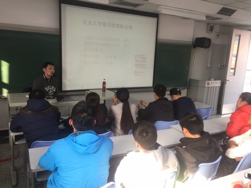 为了提高学生学术能力和人才培养质量,引导学生充分利用北京市高校馆际互借中心为高校图书馆搭建的平台资源,2016年11月16日上午10:00,jinnianhui今年会2016级硕士研究生在教学楼302教室举行“馆际互借”专题讲座。本次讲座由图书馆韩治国老师主讲。辅导员王超,葛煜、谷达及2016级全体同学参加了专题讲座。