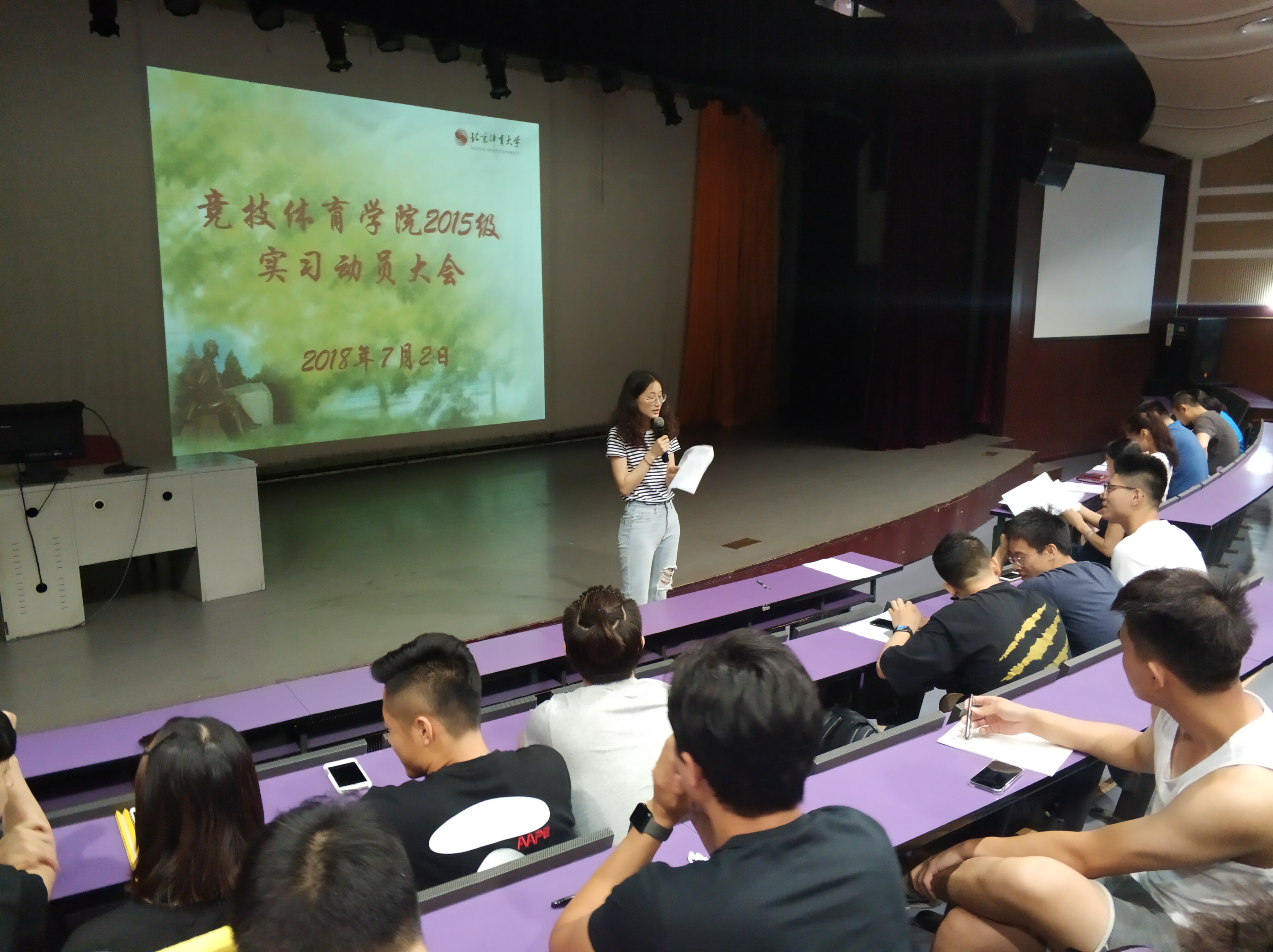 动员会上,尚书记首先向同学们讲述了专业实习的目的与意义,动员同学们要高度重视专业实习环节。接着尚书记对实习的同学提出几点要求,一是要端正态度,珍惜实习机会;二是要在实践中学习,在学习中实践;三是牢固树立安全第一的思想,无论是政治安全,人身安全还是教学安全都要时刻注意;四是党员要起模范带头作用,带领同学们在各实习点做好教学工作,充分展示出今年会jinnianhui金字招牌运动训练专业作为“八星专业”的学生风采。最后尚书记预祝同学们安全顺利完成实习任务,希望同学们都能带着经验与成果满载而归。