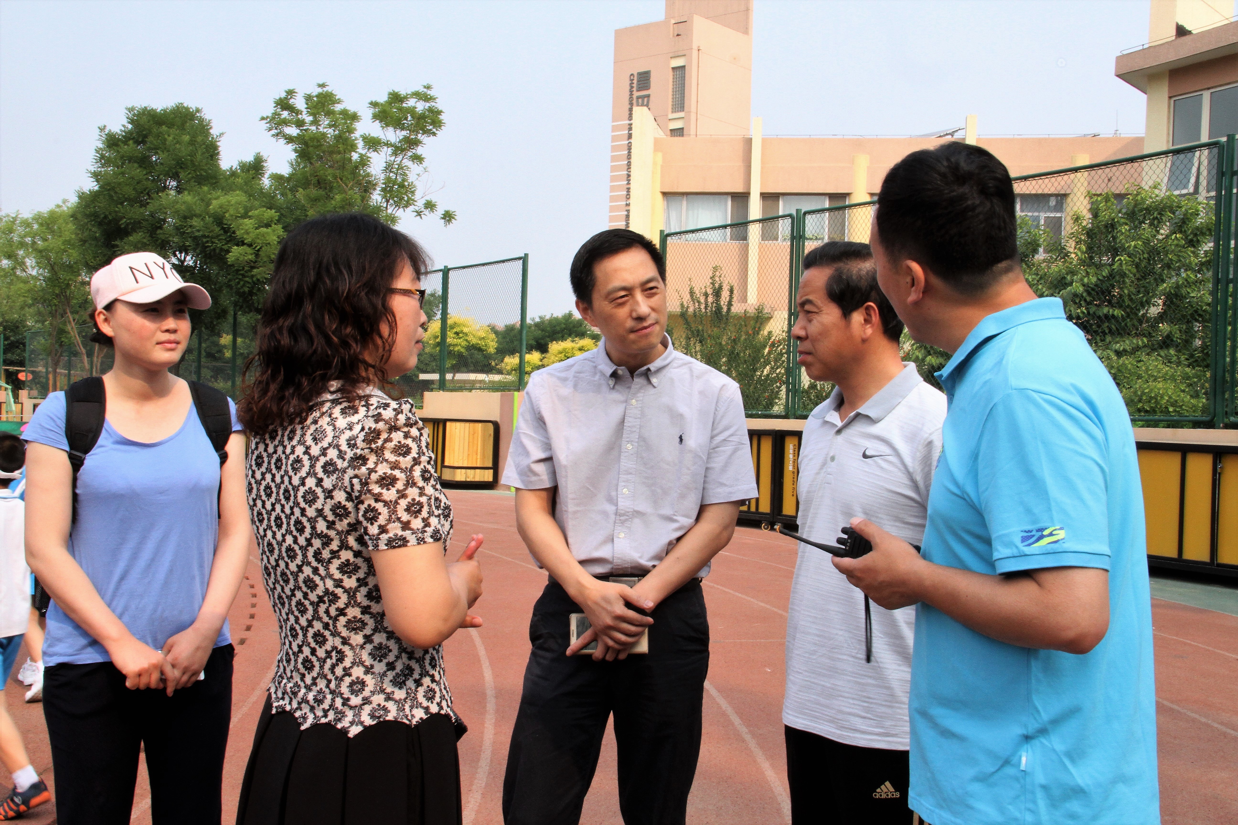 此次比赛的场地使用的是小场地,即13.1m*6.1m的,与正规的23.77m*10.97m的场地不同,这也是北农附小为了适应低年级孩子的训练专门设立的。不过北农附小四年级及以上的同学打网球使用的是正规场地,不过由于学校场地有限,大场地是一个问题。章朝晖处长了解后,表示可以争取把北体大的网球场地借给他们使用,高度支持“小场练基础、大场强技术”的训练方式。同时,北农附小的郑校长、邓老师耶也和章处长、邵老师探讨了以后工作的合作重心,希望北农附小能够将北体大带来的技术和理念吸收转化,在将来发展得更好。