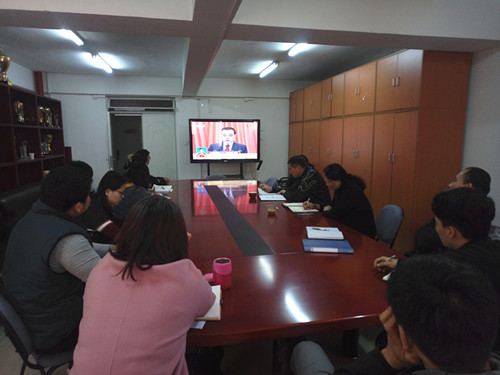 2019年3月5日,jinnianhui今年会组织全院师生在教研室和学生宿舍集体观看第十三届全国人民代表大会第二次会议开幕式实况转播。在教研楼210会议室,学院领导班子成员、师生代表集体收看开幕式实况转播,听取国务院总理李克强作政府工作报告。党总支书记尚迎秋、院长苍海、副院长徐刚、副书记鲍克以及院办公室全体教师,以及学生代表观看了此次直播并进行了座谈。