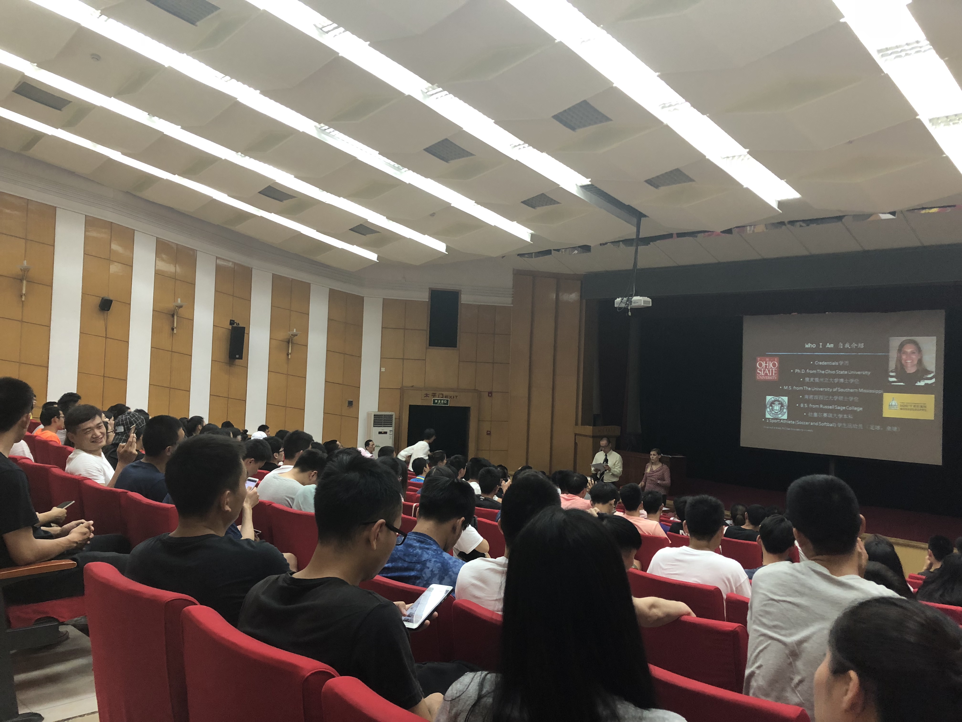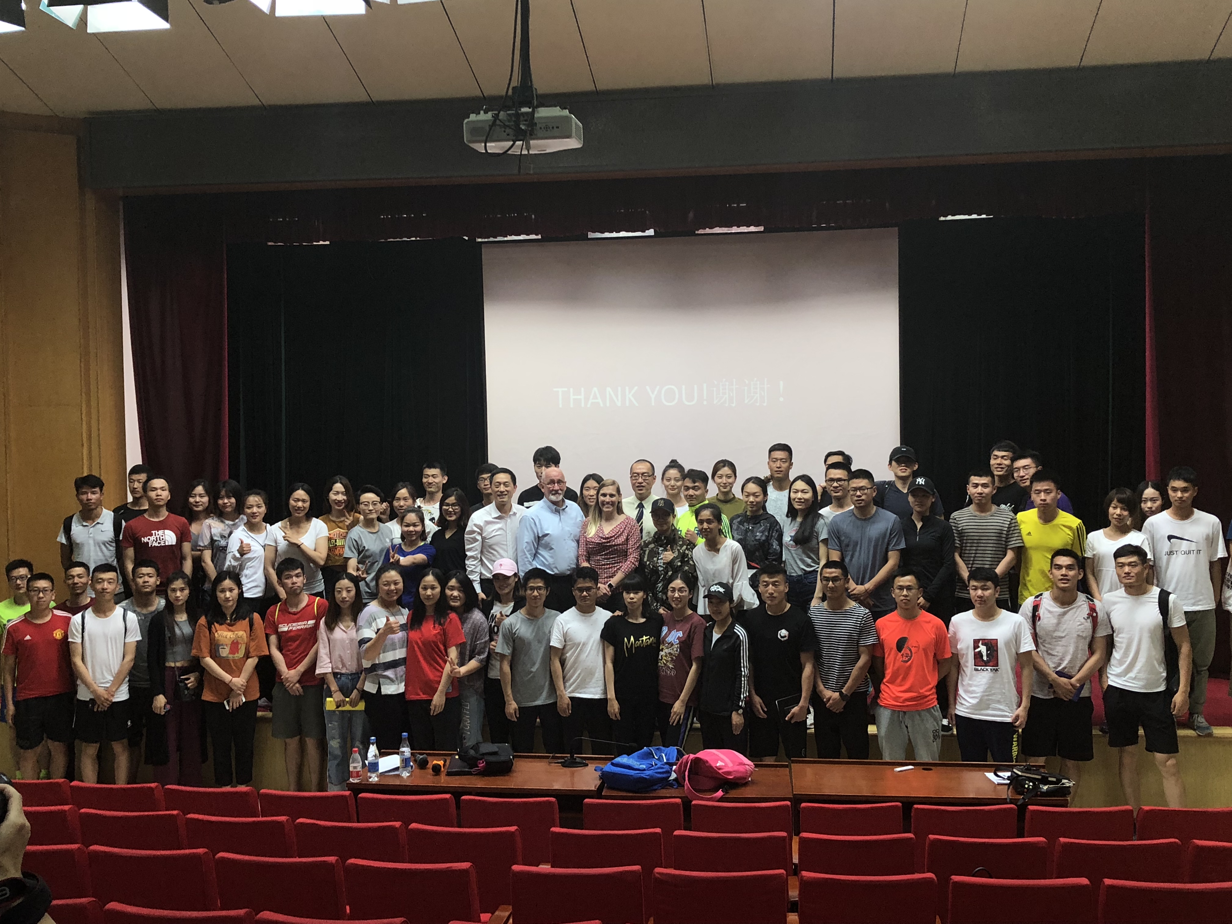 第三场《非竞技体育游戏在体育教学中的运用》主讲人为吉恩怀特教授,怀特教授的研究方向集中于青少年社交与运动干预。这场举游戏和笑声贯穿全程的讲座使得同学们不再是被动的听众,大家在体验中学会了非竞技体育游戏中责任意识、团体归属意识和安全意识的重要性。讲座的最后怀特教授指出,体育教育的目的不只是让人从身体上变得强壮健康,心理上的强壮比如愉悦和健康能力同等重要。