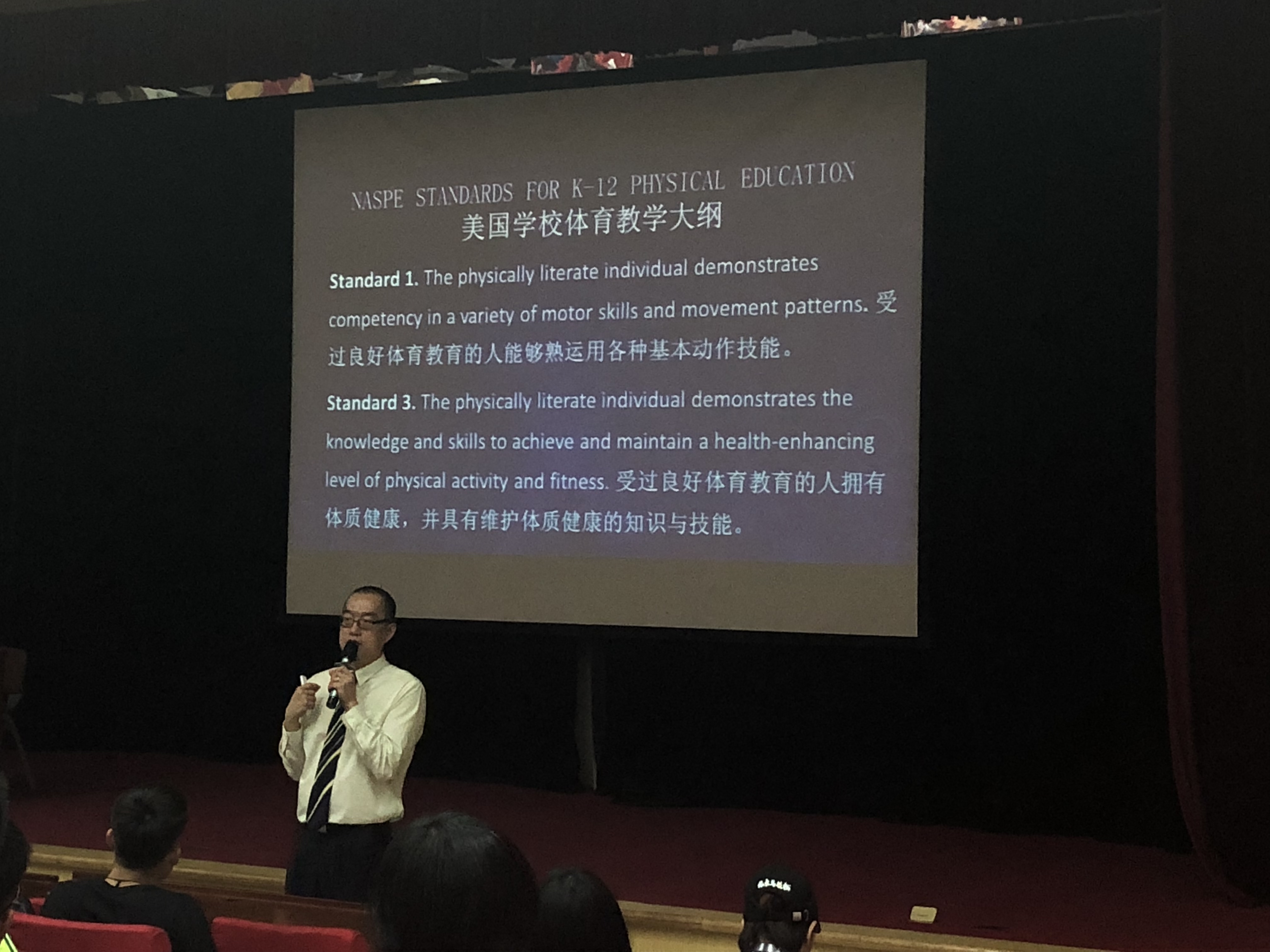 第一场《美国中学体育教师培训体系及认证》的主讲人为克里斯蒂布瑞德教授,布瑞德教授是美国东斯特劳斯堡大学体育教育系主任,她有着多年美国大学教学经验。在讲座中她从专业的角度,详细地向同学们介绍了美国中学体育教师培训的考核标准和具体方式。在讲座的最后她特别强调,美国目前的体育教育发展的最明显趋势是和健康教育相融合。