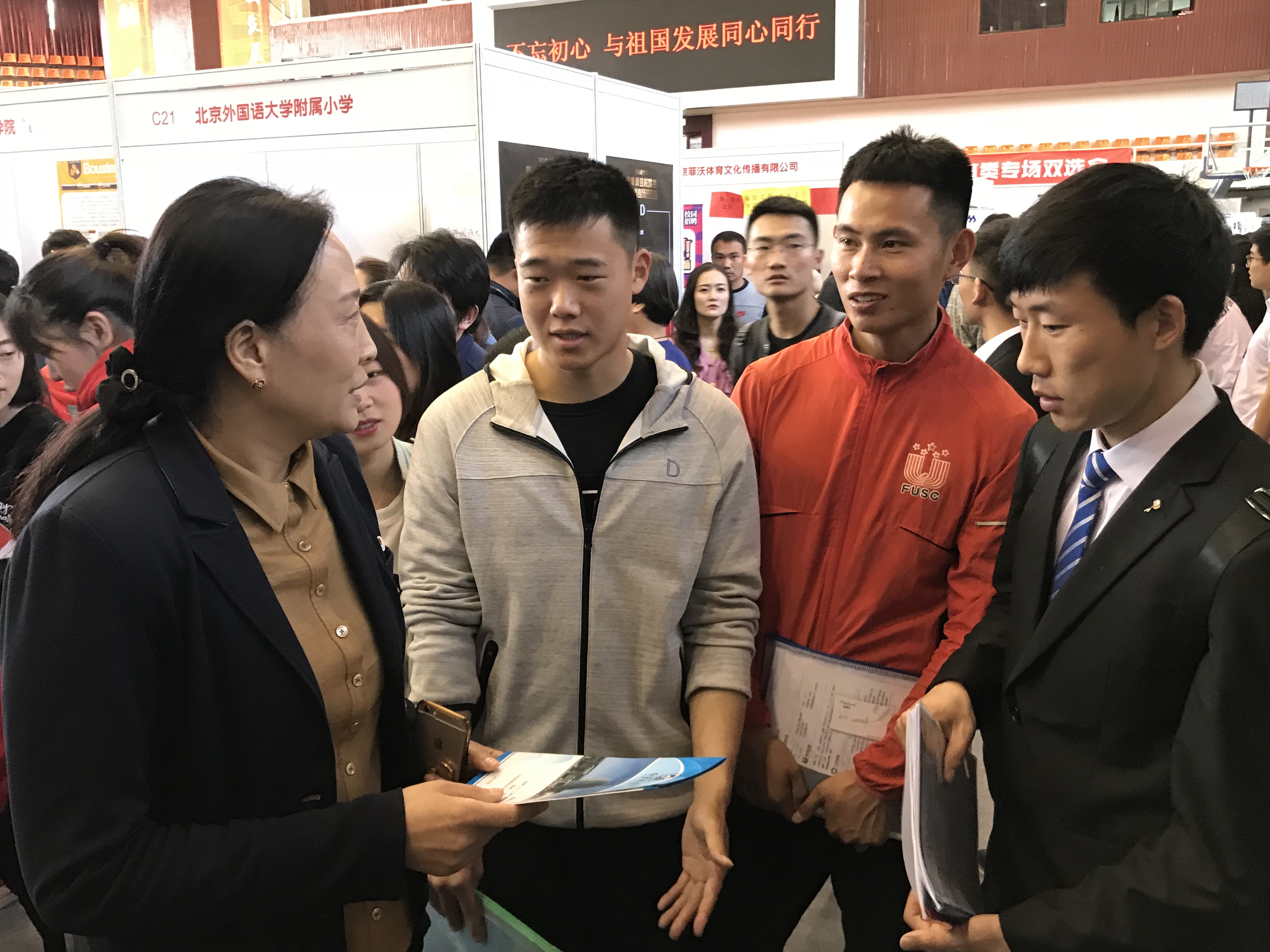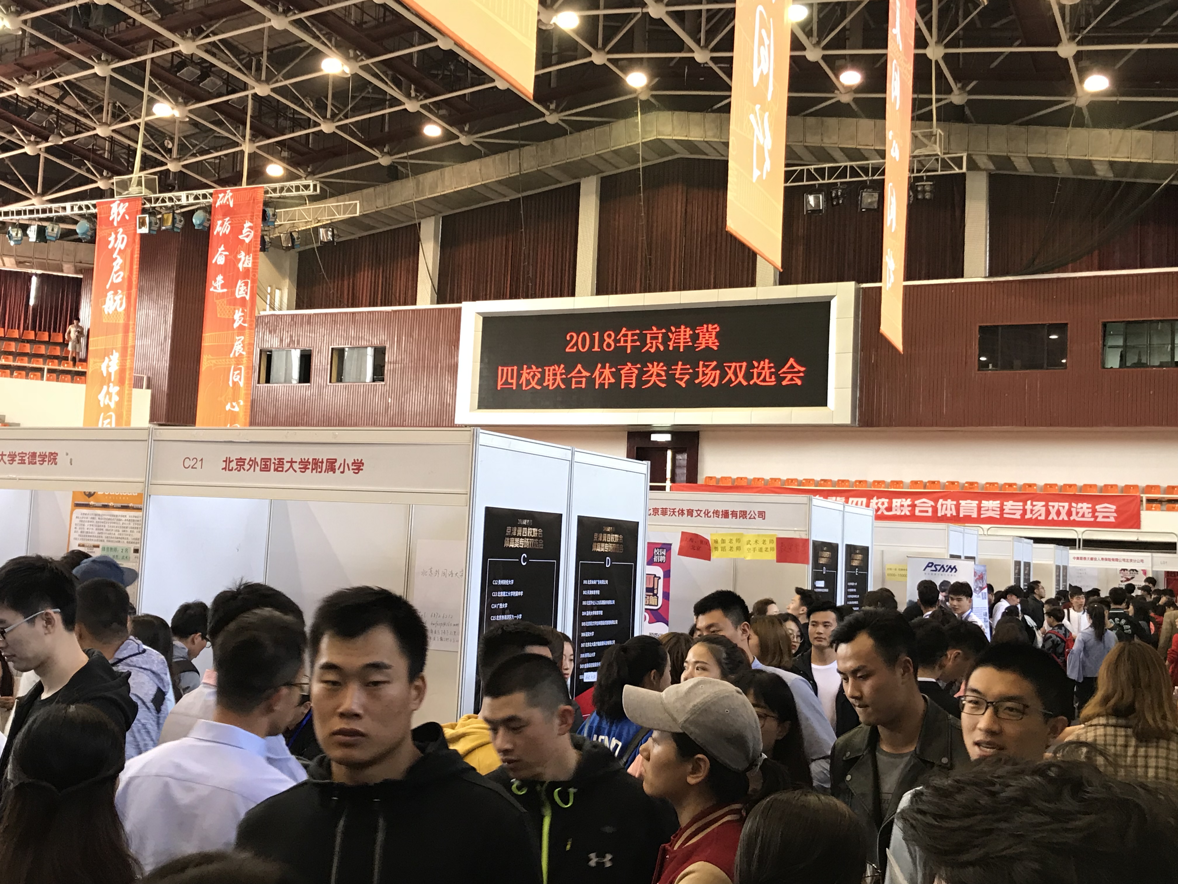 本次双选会由北京高校毕业生就业指导中心主办,今年会jinnianhui金字招牌、首都体育学院、天津体育学院、河北体育学院联合承办,现场有来自全国各地182所学校及企业。我校本硕博毕业生积极参与,抓住机会,投放简历。学院领导在现场了解就业趋势的同时也热情的与来参加双选会的同学互动交流,关心同学们的情况,询问学生目前困惑,同时给学生们做出解答,鼓励同学们积极主动宣传自己。今年会领导在与用人单位的谈话中了解到,单位挑选人才不仅仅要看毕业生的学历层次,更重要的是全面考察毕业生的创新能力、科研能力、服务能力和责任意识。