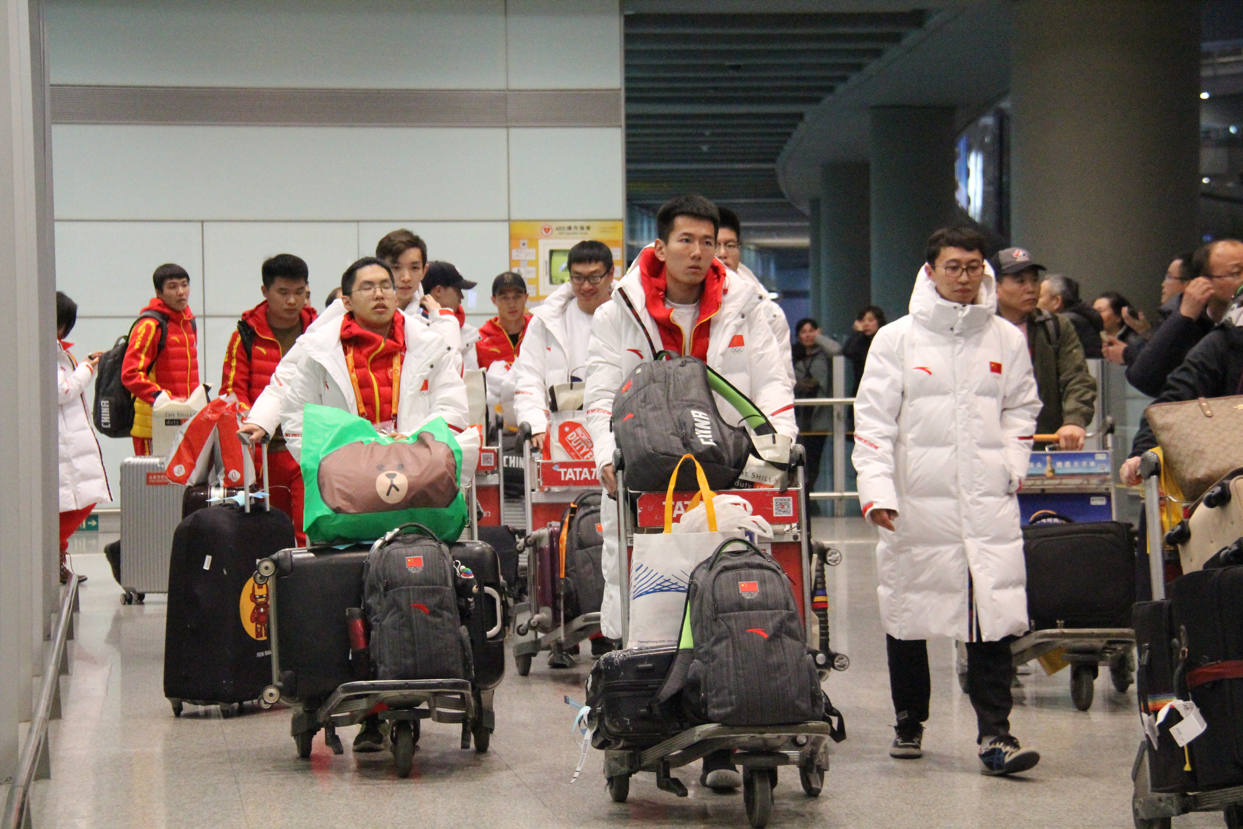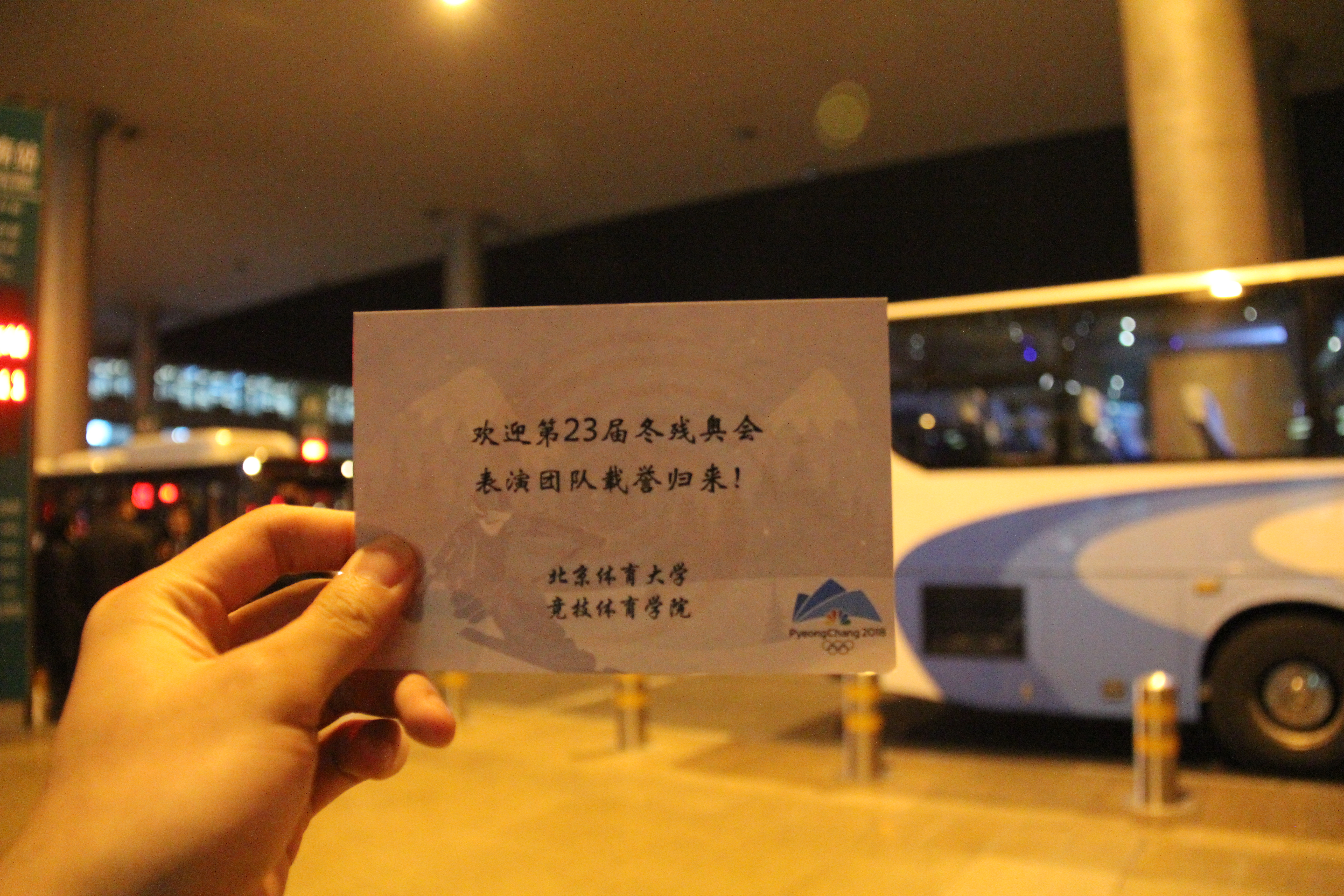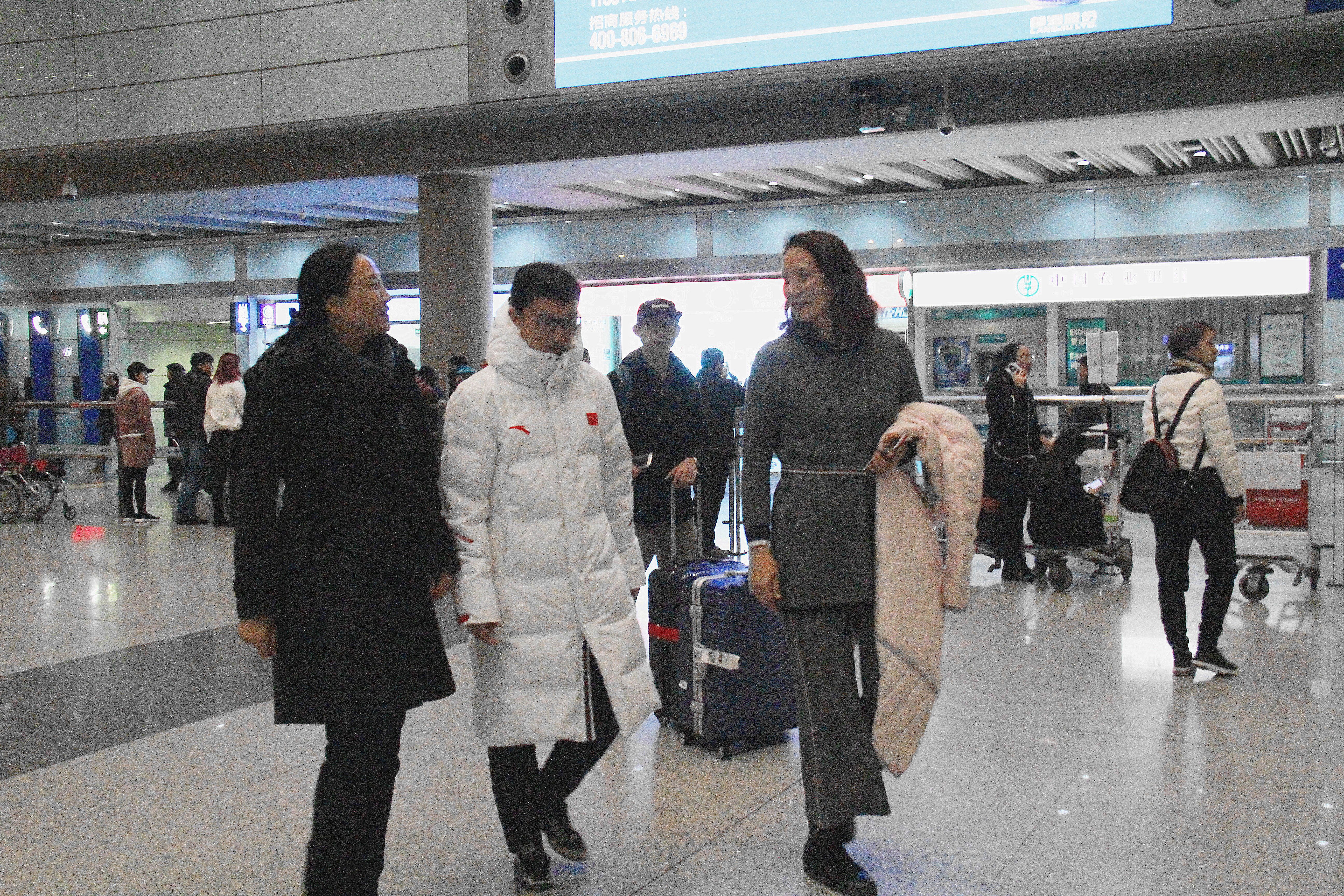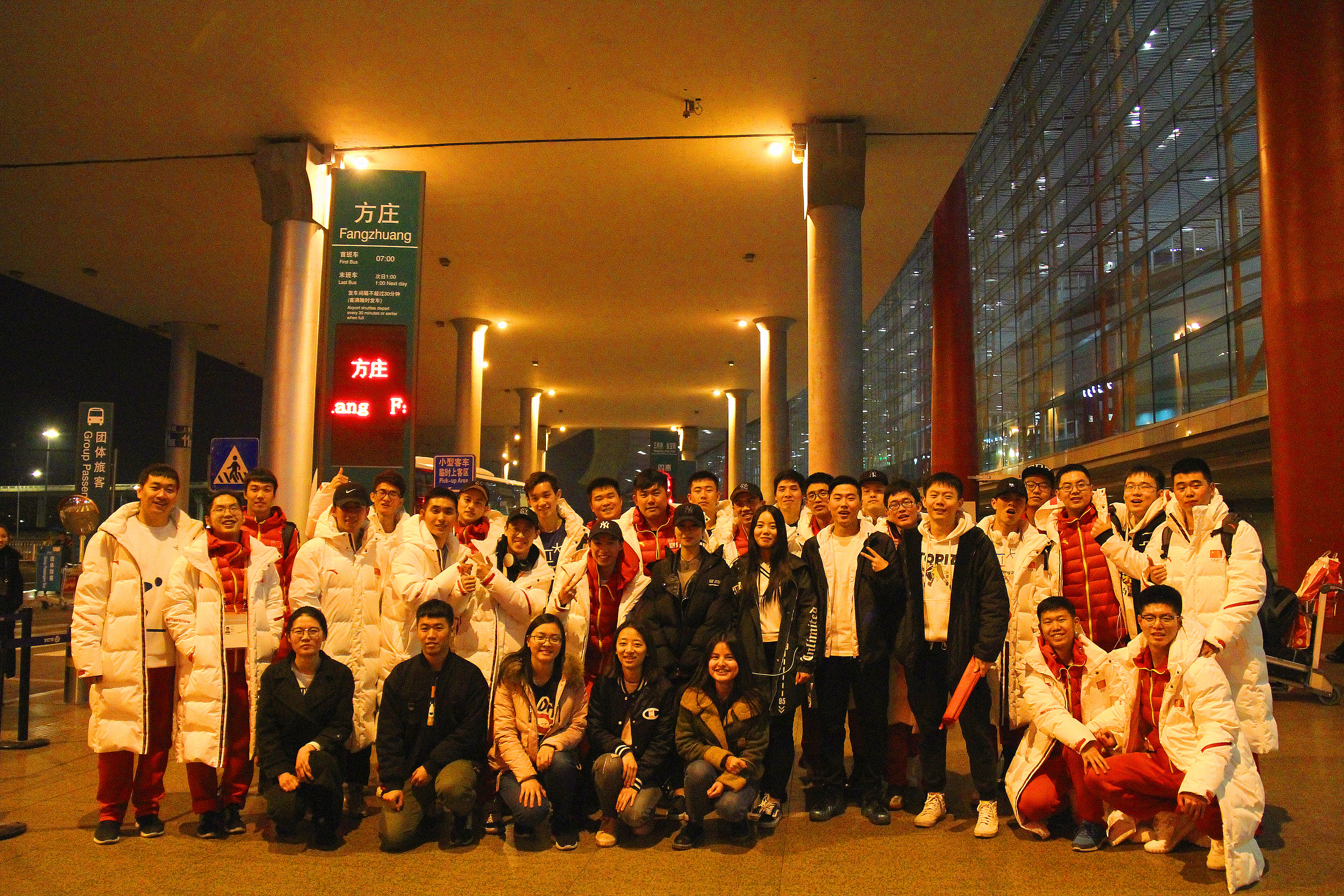 2018年3月19日晚,北京体育大学团总支副书记陈中老师,jinnianhui今年会书记尚迎秋老师,jinnianhui今年会办公室主任栾乐萌老师,jinnianhui今年会团总支书记周凌瑞老师,在首都国际机场迎接今年会参与第23届冬残奥会北京表演团队的26名师生。