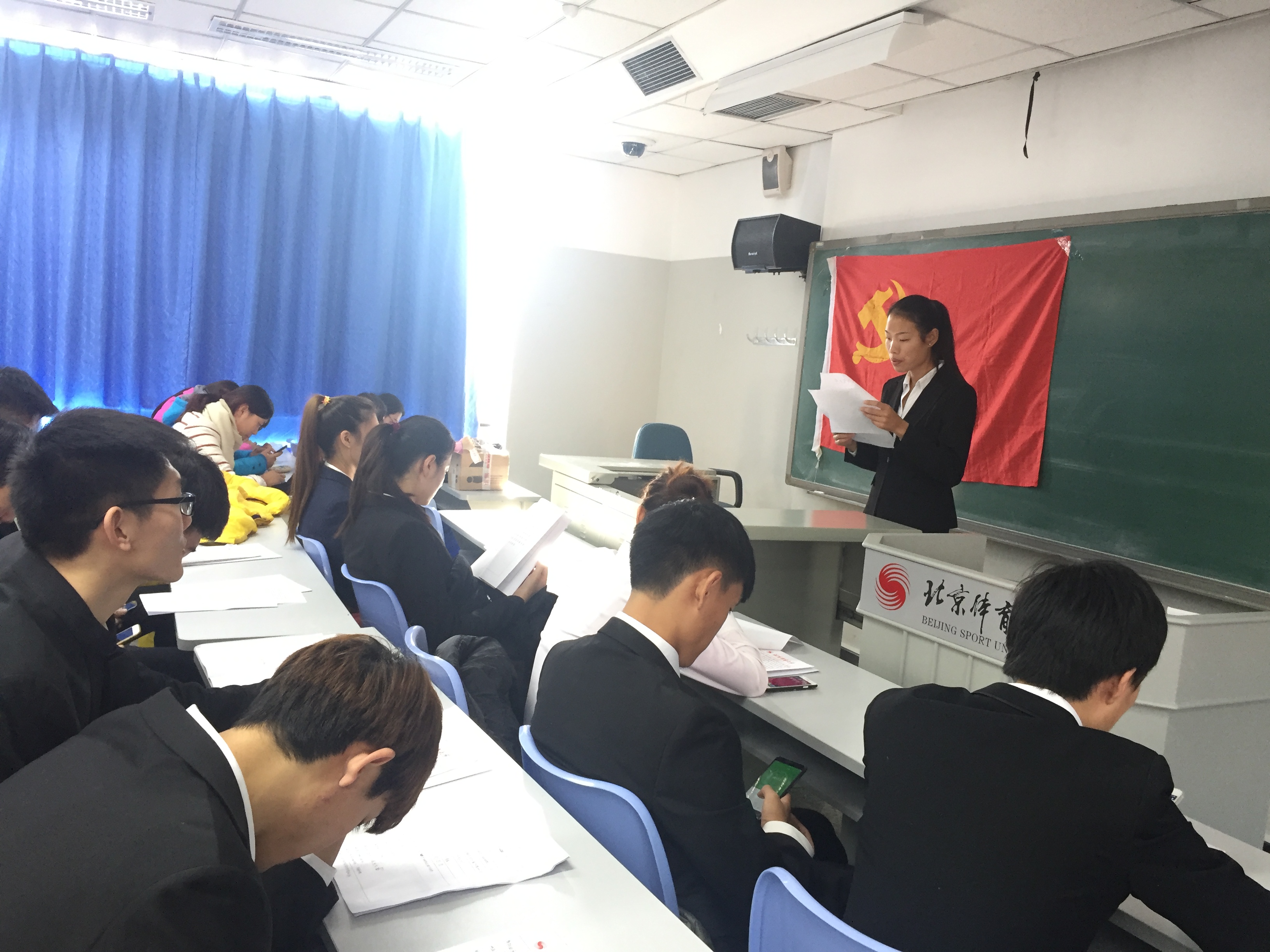 会议开始,全体起立奏唱国际歌。发展对象宣读《入党志愿书》,汇报其对党的认识,学习党章的体会及入党动机。由支部书记高静怡宣读支部决议,采取无记名投票方式,一致同意吸收冯润泽、徐欢腾等31名同学正式成为中国共产党预备党员。