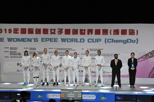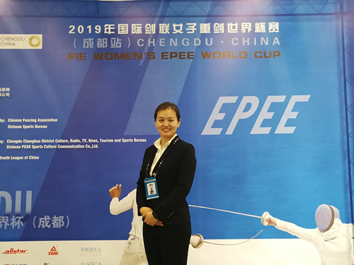 2019年国际剑联女子重剑世界杯赛于3月23-25日在四川省成都市成功举办,来自26个国家和地区的168名选手参与了角逐。今年会重竞技教研室许丽娜老师代表中国籍裁判参与了该赛事的执裁工作,其在赛中执裁水平得到了国际剑联技术代表的一致肯定,并以第一主裁的身份执裁了该赛事的团体决赛场次。这也是近年来中国籍女性裁判员首次执裁世界剑坛冠亚军决赛场次!这充分向世界展示了北体教师国际化的专业执裁水准!