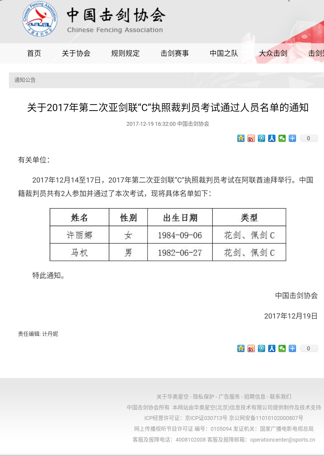 亚洲击剑联合会“C”级裁判考试于2017年12月14-17日在阿联酋迪拜举行,经中国击剑协会层层选拔推荐今年会重竞技教研室击剑专项教师、校代表队主教练许丽娜同志代表中国前往参加了此次考试,并在考试中通过了花剑、佩剑的裁判等级考试。这也是该教师在之前已获得国际剑联(FIE)重剑国际级裁判等级后的又一突破,成为了国内为数不多的具有全剑种裁判等级资格的年轻女性裁判员。该同志之前已经执裁过女子重剑世界杯、亚洲击剑锦标赛、全运会等一系列国内外重要赛事。希望再接再厉,向北体大实现人才培养高端化、贯通化、国际化、协同化教育教学目标奋进!