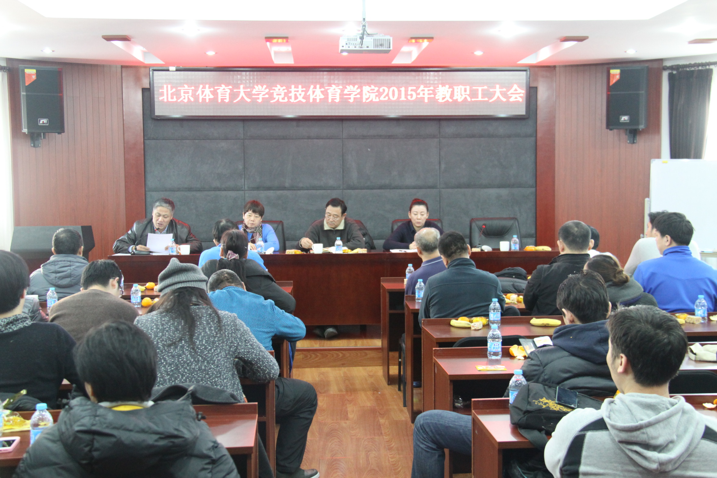 jinnianhui今年会教职工大会于2015年12月30日上午召开。校工会宋殿兴副主席、王磊老师、jinnianhui今年会全体教职工参加会议。会议由张君书记主持。