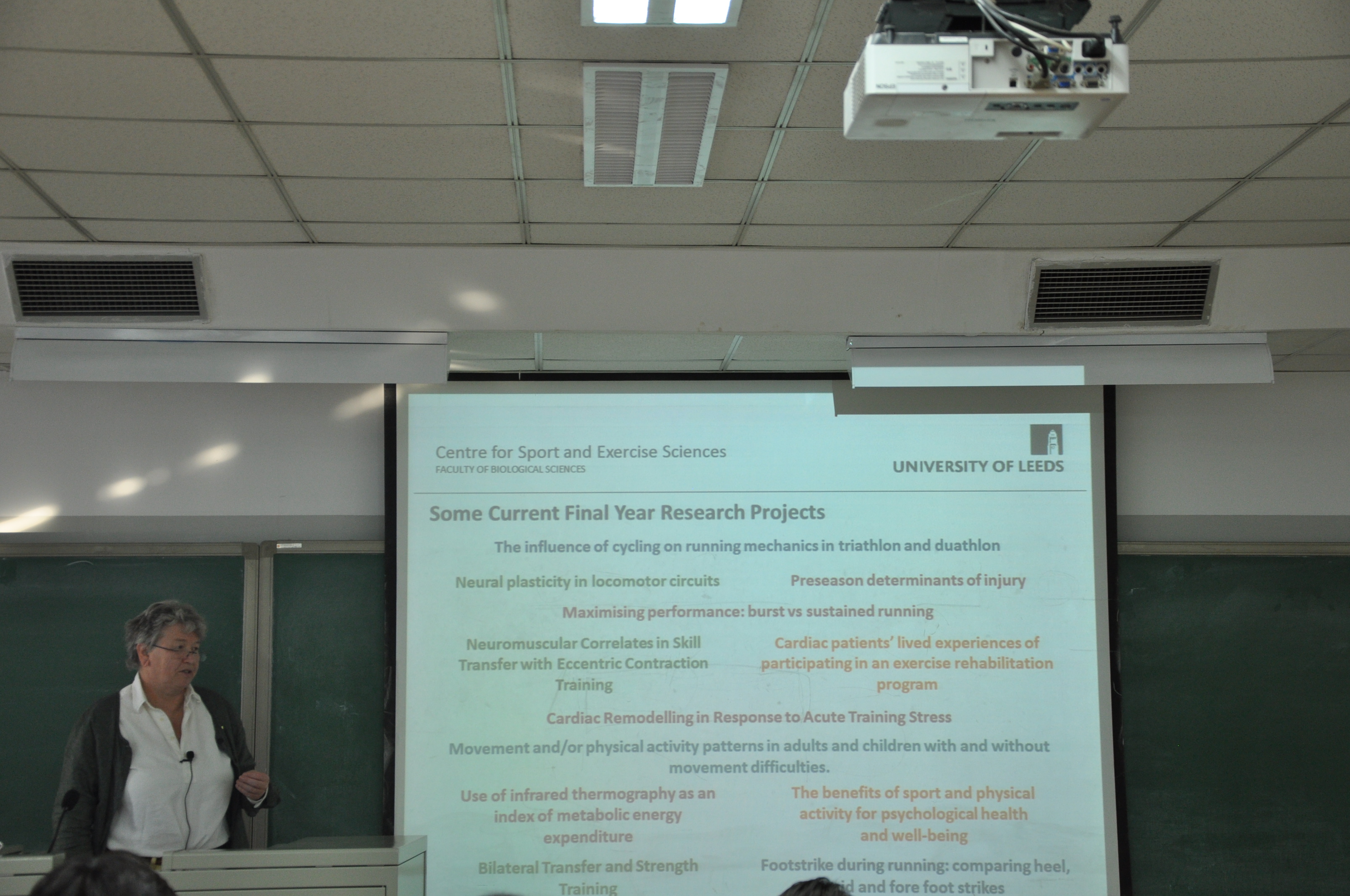 11月22日,阿特利博士和希尔斯博士分别介绍了英国和美国体育与科研方面的情况,主要从英国及美国高校体育及运动科学相关的课程设置、科研方向、学位教育以及学生就业情况等方面进行了详细介绍。