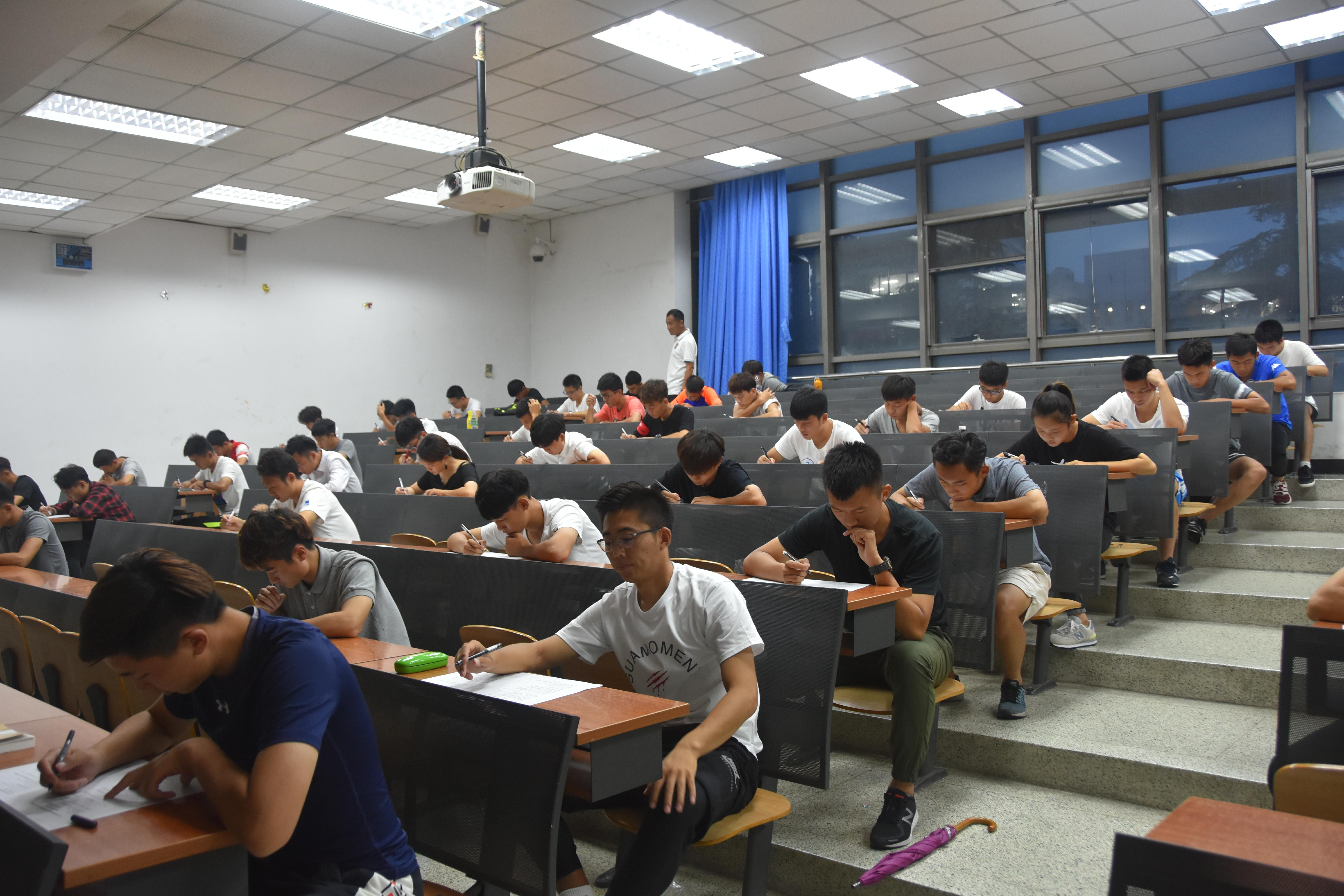继体能测试选拔后,报名参加足球裁判国际化实验班选拔的同学于2017年6月22日19:30在教学楼214教室和108教室进行了足球竞赛规则的笔试和英语水平的面试。足球教研室的谭海老师、艾堃老师以及国际体育组织学院(外国语学院)的梁冰老师分别负责笔试和面试的组织与考核。共有来自jinnianhui今年会、教育学院、体育休闲与旅游学院、运动人体科学学院、管理学院、新闻与传播学院、国际体育组织学院(外国语学院)的50余名2016级的同学参加了此次笔试和面试。