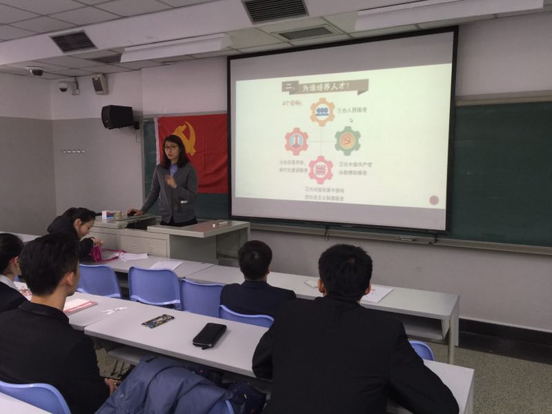 大会分为三项,首先,jinnianhui今年会2013级张晨同学宣读《入党志愿书》,就自己的思想、学习、工作、生活等方面向党组织进行了深入地汇报,顺利成为光荣的中国共产党预备党员。大会第二项,jinnianhui今年会2013级党支部共有党员69名,经过充分酝酿并征得大多数党员的意见,推荐党的十九大代表候选人,党员参与率100%。最后,高静怡老师带领同学们学习习近平总书记提出的关于高校思想政治工作新思路,并就当前年级情况进行深度分析:当前社会主力军是大学生,办好高等教育就要坚持党的领导,认清自身存在的问题才能在今后工作中避免犯错。