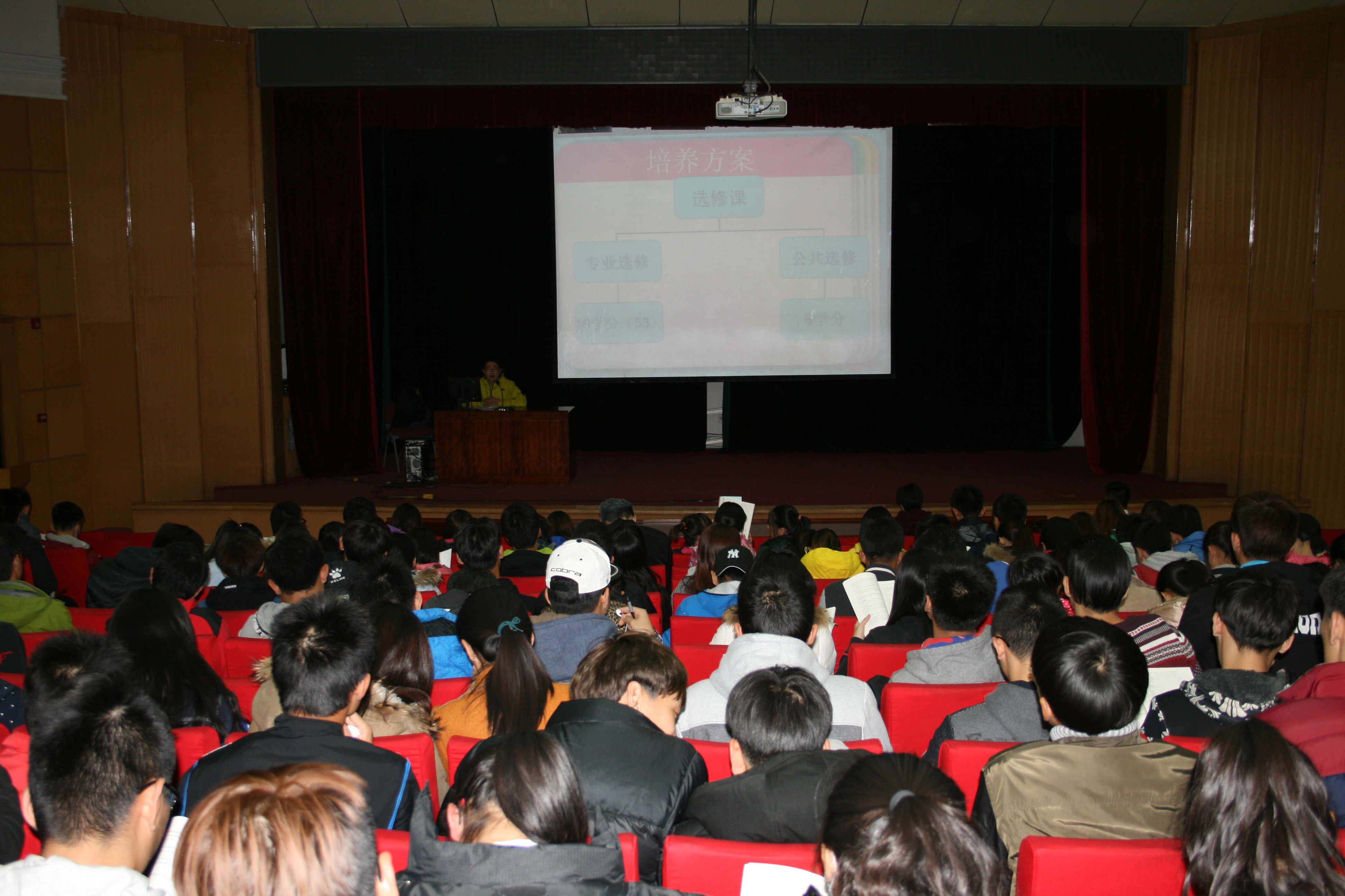 2015年10月29日7:30于大学生活动中心召开jinnianhui今年会教务会议及入党宣讲会,出席会议的有:教务老师宫超、刘亚京,辅导员鲁骥、12级学长田家成。