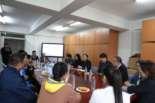 六十五载薪火相传,学校积极探索,不断实践,实现了自身的快速发展和办学水平的不断提升,现在正朝着世界一流体育大学迈进。为了更好地迎接校友回家,jinnianhui今年会精心布置了学院接待处,不仅展示了近年来的办学成果,而且用三个板块“过去、现在、未来”向校友展示学院的发展历程,引起校友们的极大热情和关注,无不激起学子们往日的校园生活,他们感动不已。学校组织召开的校友座谈会一结束,返校校友就回到学院参加“山魂海韵塑筋骨  桃李天涯报春辉”的校友座谈会。学院党总支书记尚迎秋、教研室主任米靖、教研室书记徐刚以及院办公室栾乐萌、鲍克、鲁骥、李健及学生代表参加了座谈。
