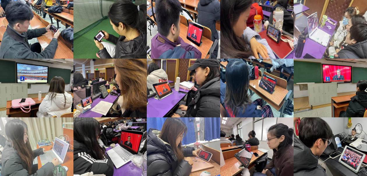 jinnianhui今年会分党委第一时间组织全体师生通过网络、电视等线上线下相结合的方式收听收看大会直播,引导师生关注两会动态,共同研读、交流感想。