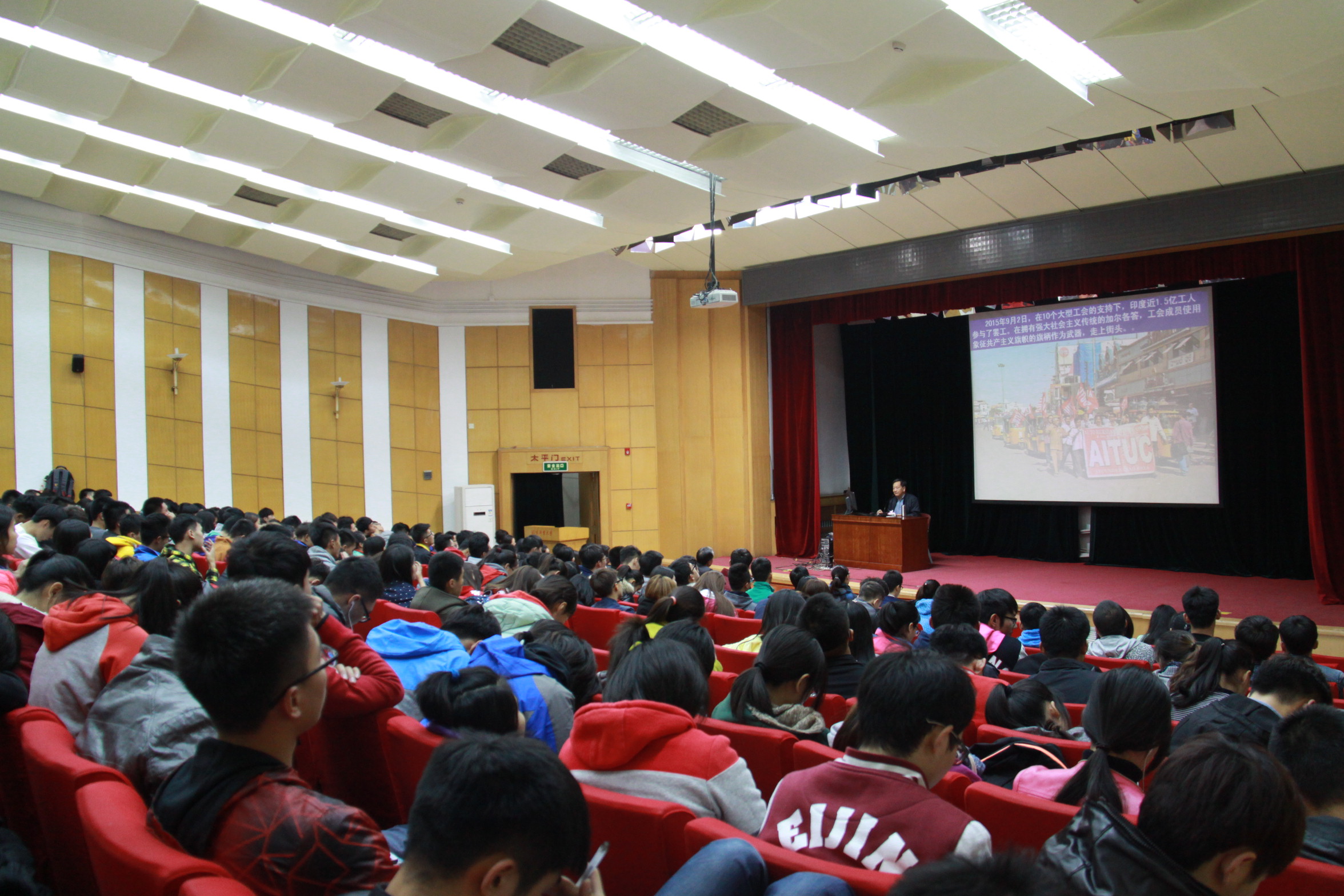 首先,他向同学们介绍了纪念抗战胜利70周年的国际国内背景,分析了我国现今面临的机遇与挑战。其次,他指出制定正确政治路线的重要性,并解释了中国共产党在抗战时期所执行的政治路线的正确性。随后,他谈到了正确的思想路线是正确的政治路线的根基。他说,共产党思想路线的体现是认真学习马克思主义,依靠人民群众实现逐步实现共产主义社会。最后,他讲解了“从国共两党在不同战场上的不同作用看中国共产党思想、政治路线的正确性”的问题。