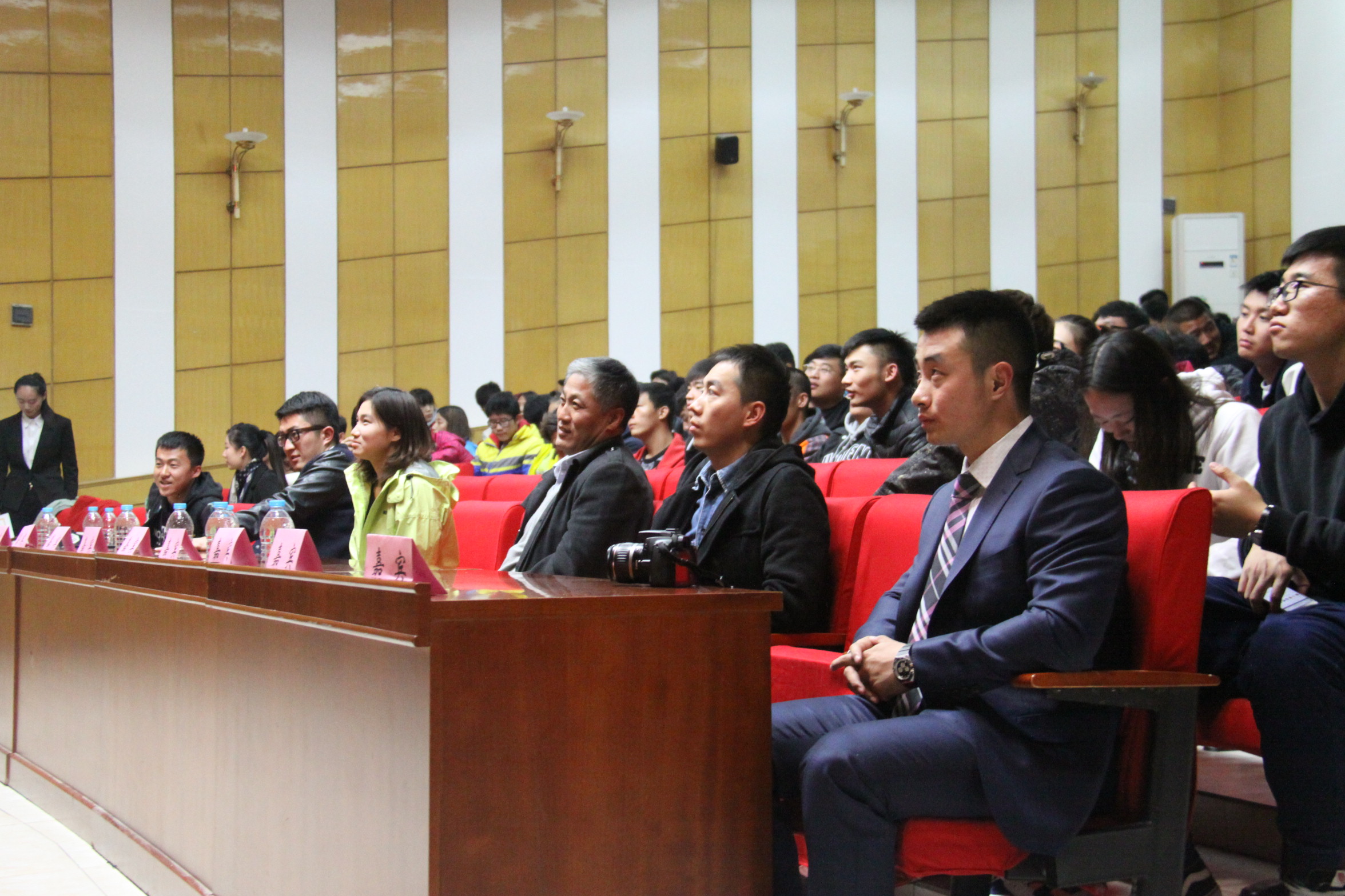 2015年11月3日晚,jinnianhui今年会暑期社会实践表彰大会在大学生活动中心举行。到场嘉宾有:学院党总支书记张君、2012级辅导员周耀虎、2012级辅导员孟婷婷、2013级辅导员王艺杰、2014级辅导员、院团总支书记王业乔以及2015级辅导员鲁骥。