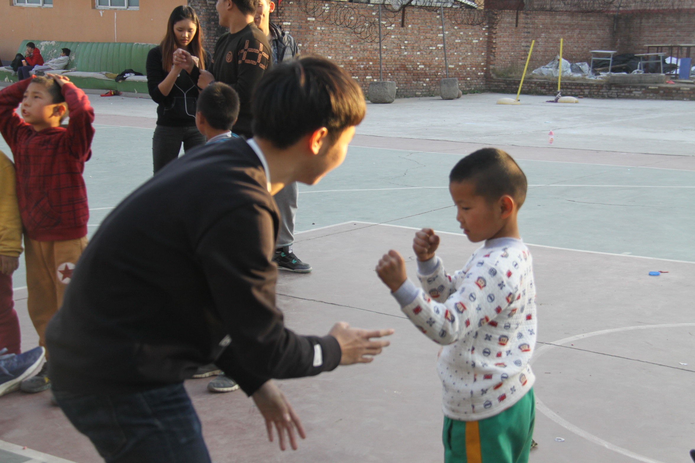 在院老师的安排下志愿者们为孩子们表演了跆拳道、柔道等体育项目并对孩子们进行了简单的现场教学,将气氛推向了高潮。