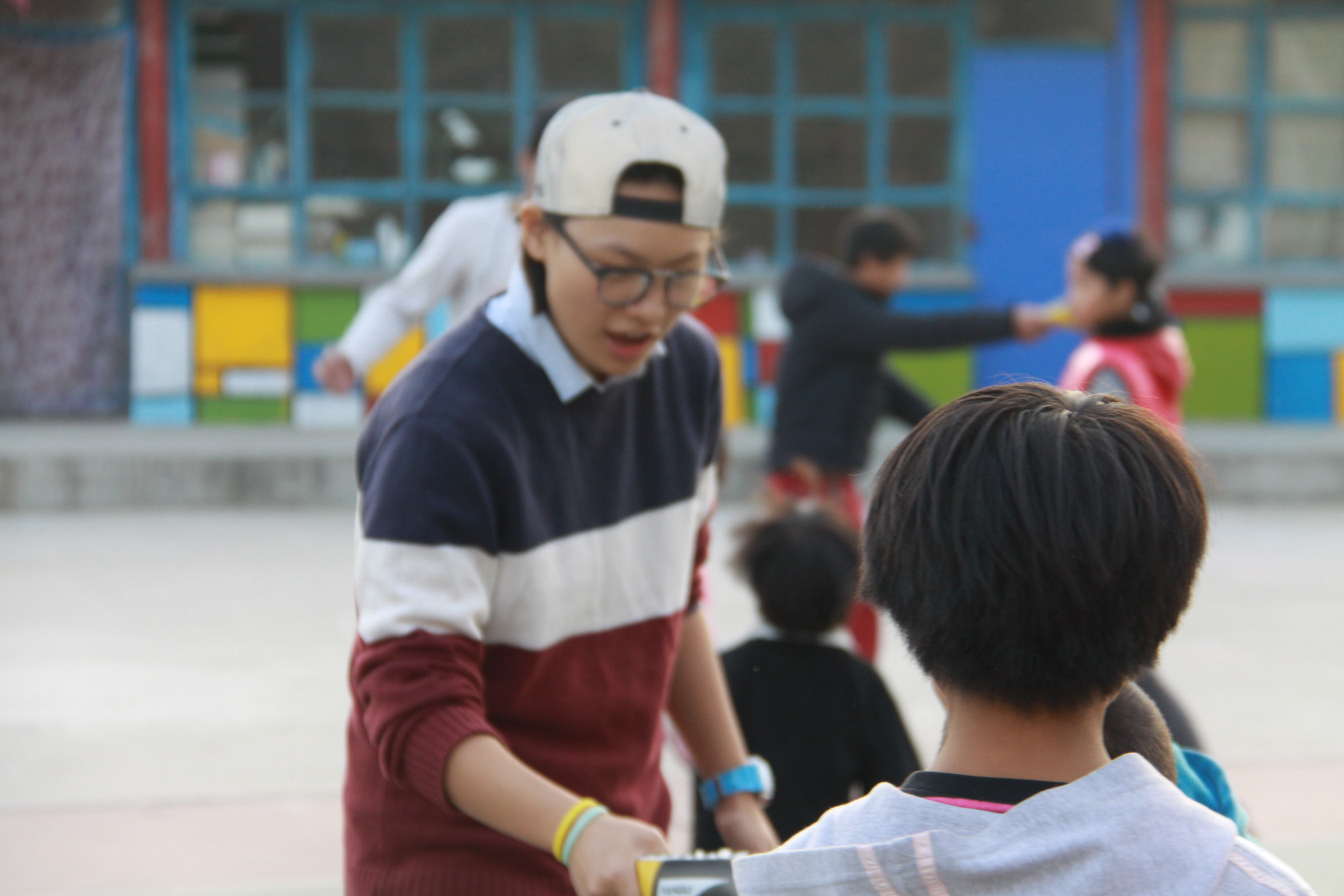 2015年11月1日下午,jinnianhui今年会16名志愿者迎着刺骨的寒风来到北京顺义南法信光爱小学,为该校的孩子送去迟到的节日糖果。