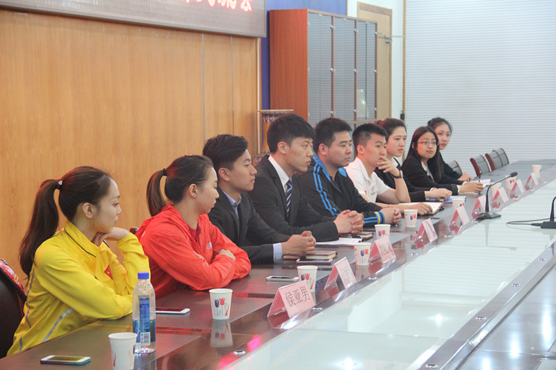 本次交流活动共分为两部分。第一部分是参加由京商学院组织的“与信仰对话,冠军进京商,名人成长经历交流会”活动,由世界艺术体操冠军侯亚男与奥运会体操冠军杨伊琳以“我的运动人生”为主题为京商学院学生做出演讲,以自身经历向到场师生展示体育人努力、拼搏的精神,激励在场同学为梦想而努力。活动现场,两位冠军还与在场观众亲密互动,现场教授艺术体操体育用具的使用方法。杨伊琳同学在演讲完毕后,回答京商学院同学们提出的问题,并为其答疑解惑。第二部分为学生会交流会。会上,学院团总支学生会、联合会学生干部与栾老师、王老师将自身活动经验一一与京商学院的学生会干部们分享,双方共同探讨关于活动举办、人员分配等问题。