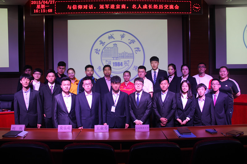 2015年4月27日,jinnianhui今年会本科生生杨伊琳、研究生侯亚男以及团总支学生干部在学院办公室主任栾乐萌老师、团总支书记王业乔老师的带领下赴北京城市学院京商学院进行交流活动。出席本次交流活动的京商学院方面代表有由京商学院院长兼党总支书记徐刚,学工部副主任刘雨以及团总支书记韩起龙老师。