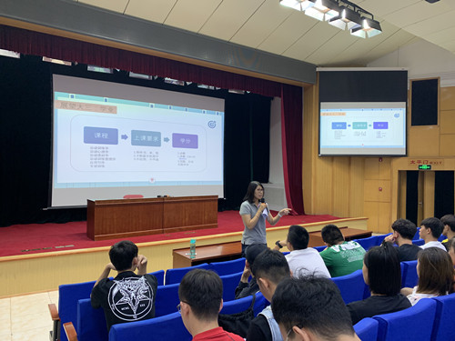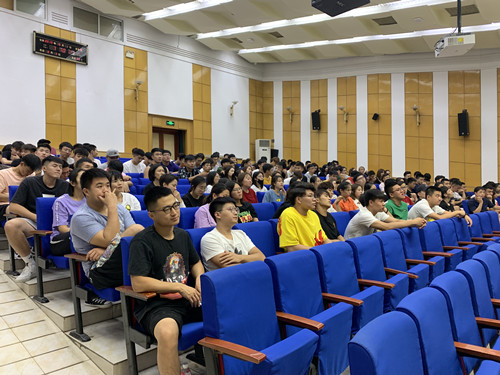 2019年9月1日晚上7时,jinnianhui今年会2017级辅导员高静怡、助管李思思与竞体2017级全体学生于大学生活动中心召开以“使命在肩、奋斗有我”为主题的年级大会。