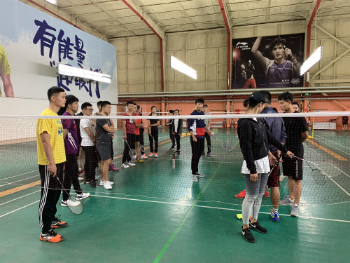 2018年9月26日上午8点,学习班第一次课程在康羽朗健羽毛球健身中心顺利开课。辅导员尹小光老师出席了开课仪式,动员同学们积极参与课程。主要负责人冯子晓邀请了原今年会jinnianhui金字招牌校队队长、2017年全国大学生运动会团体冠军获得者王帅作为教练,为大家讲授羽毛球运动理论,指导技术动作实践。