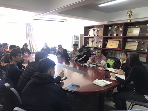 2019年2月17日上午十点,jinnianhui今年会2017级各班班长以及各部门部长于教研楼212开展新学期任务安排会议,本次会议由2017级辅导员高静怡和助导李思思老师主持,本次会议意在明确新学期目标,加强年级骨干凝聚力,共同营造积极的学习氛围。